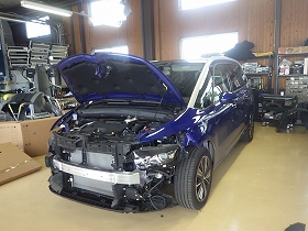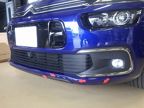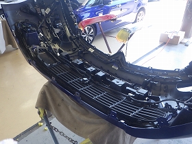 フロントバンパー修正作業を行う為、分解作業を行いました。