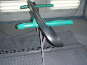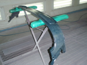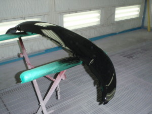 足付け作業の後、塗装ブースに入れ、シリコンオフで脱脂作業、エアブローを行い、