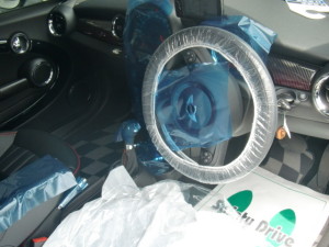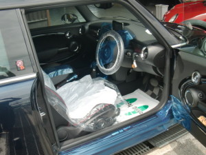 ハンドル・シートカバー、保護テープの貼り付け作業を行いました。