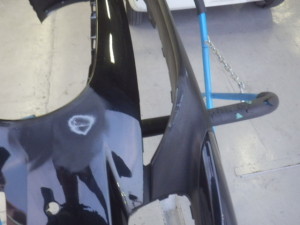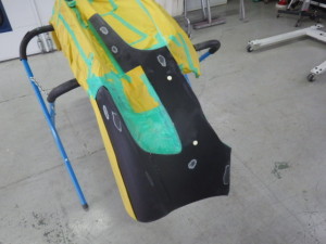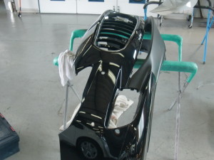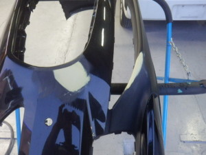 分解作業の後、キズの研ぎ込み作業、パテ付け作業を行いました。