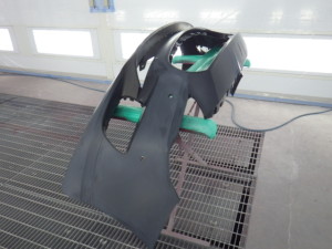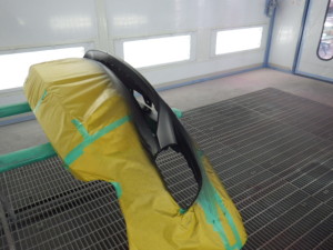 バンパー下部の艶消し部分の塗装作業を行いました。