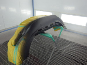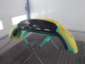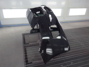 バンパー上部の艶有り部分の塗装作業を行いました。