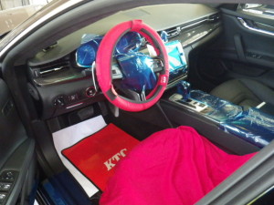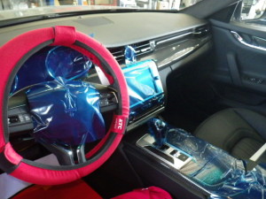 入庫時確認作業の後、室内のキズ汚れ防止の為に、ハンドル、シートカバー、