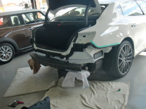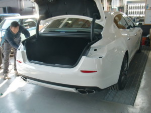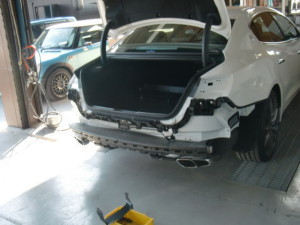 Home » 未分類 » 【鈑金塗装】【事故】兵庫県神戸市、K様、2013y、マセラティ、クアトロポルテ、リアバンパー損傷へこみ修理レポートです!ありがとうございました。