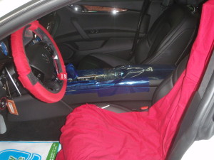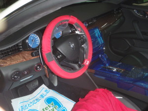 入庫時確認作業の後、室内のキズ汚れ防止の為に、ハンドル、シートカバー、保護テープの貼り付け作業を行いました。