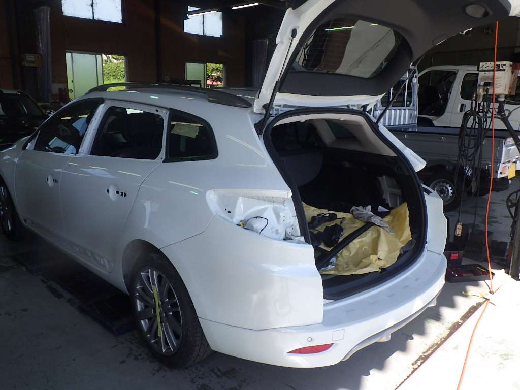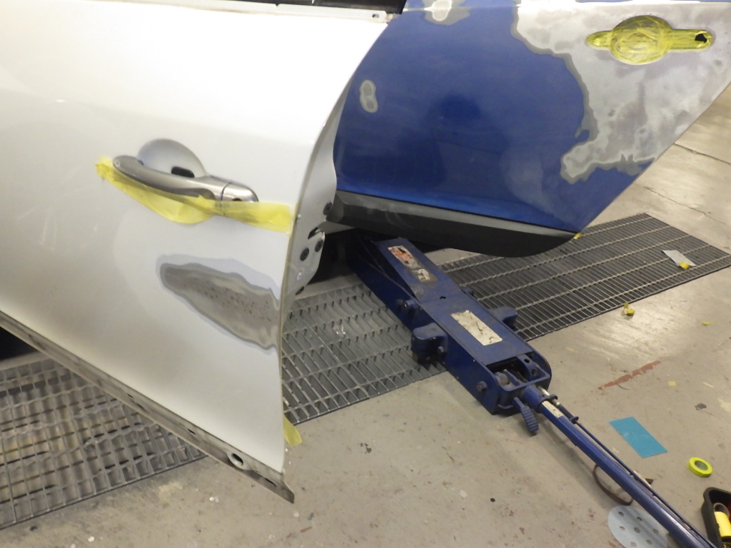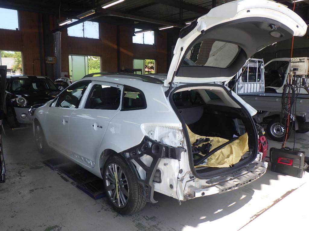 仮合せ作業の後、損傷箇所の板金作業を行いました。