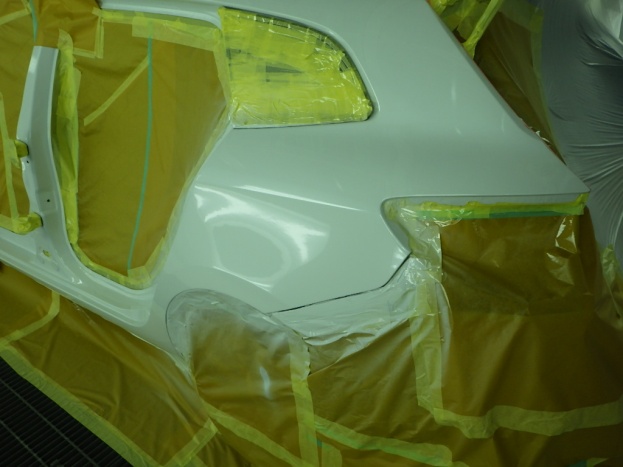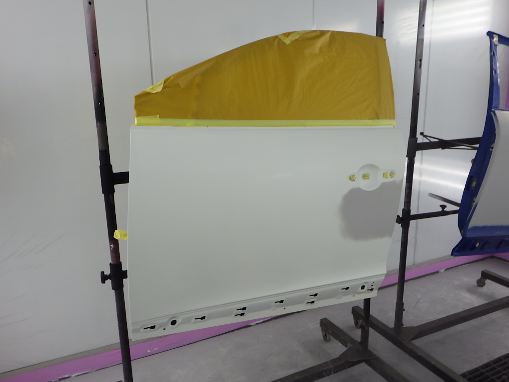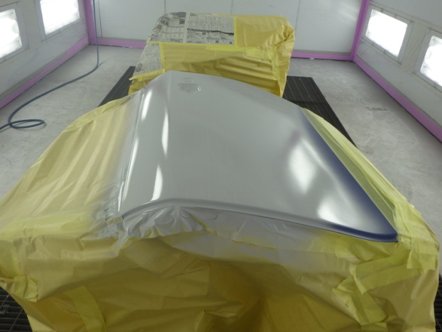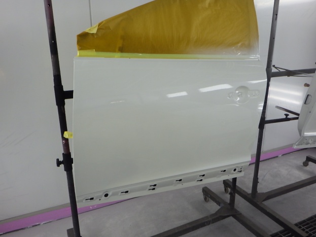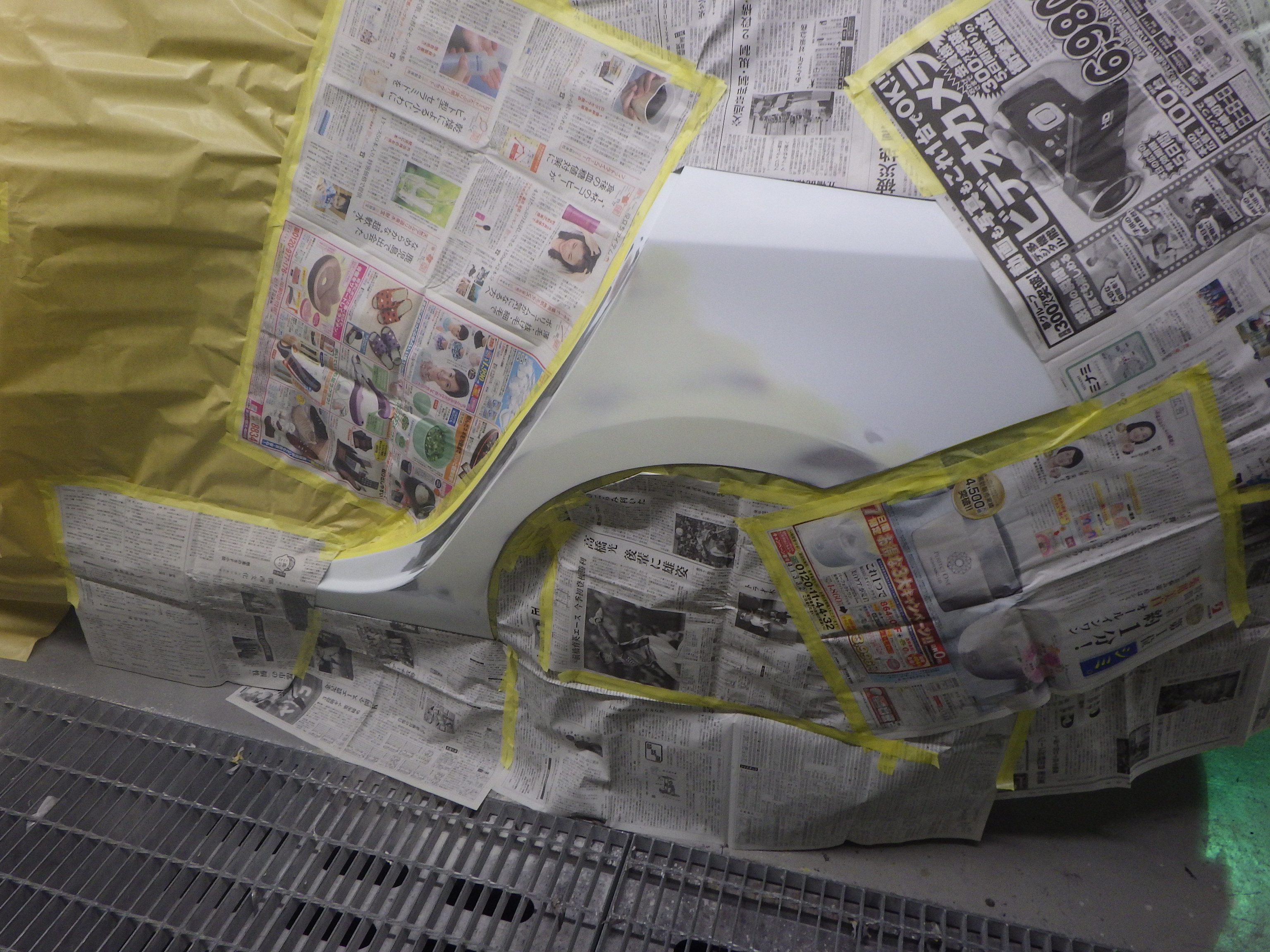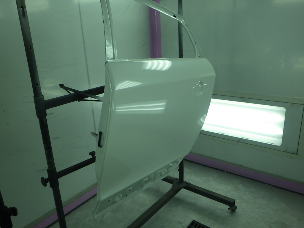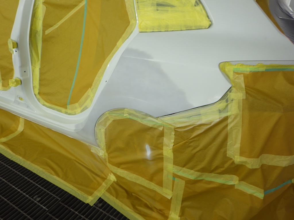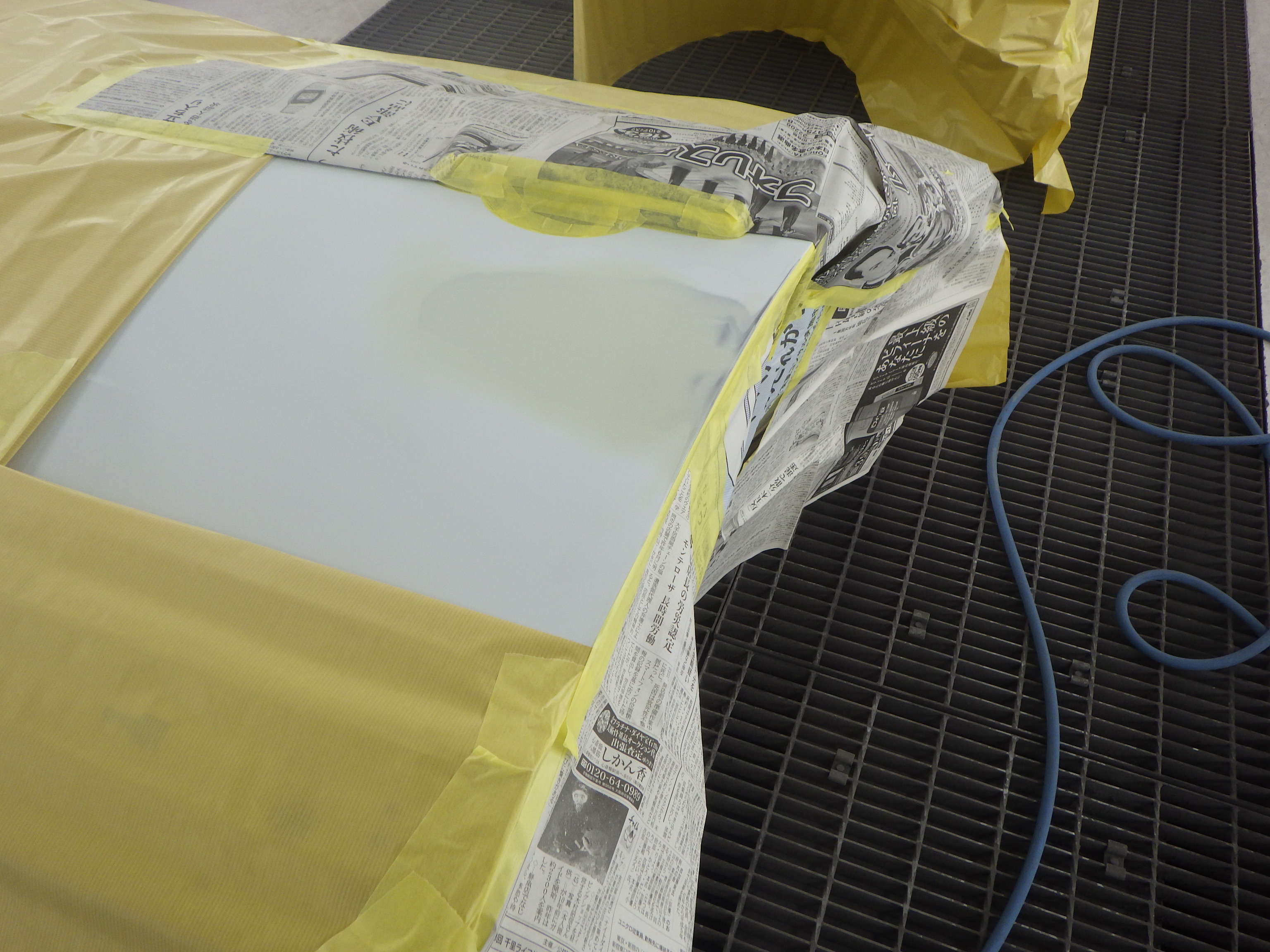 ベースコート(白)、トップコート(クリヤー)の順に塗装作業を行いました。