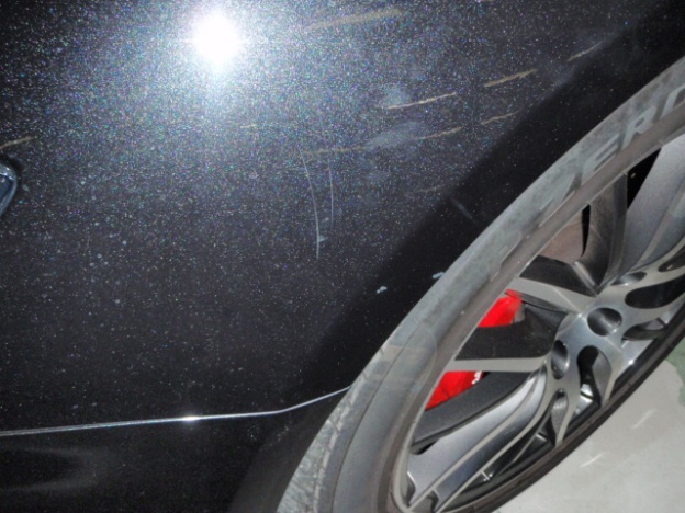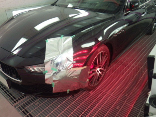 【鈑金塗装】【事故】兵庫県神戸市、K様、2014y、マセラティ、ギブリ、フロントフェンダー損傷へこみ修理レポートです!ありがとうございました。