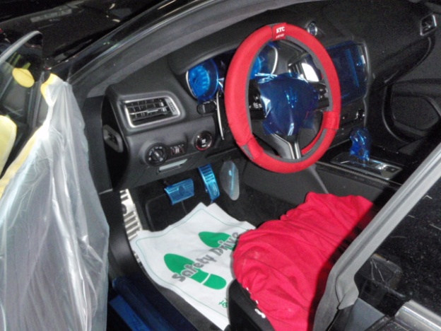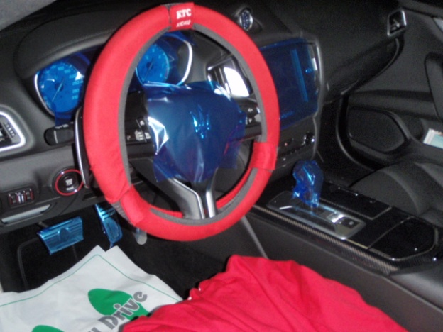 入庫確認作業の後、キズ、汚れ防止の為、シートカバー、ハンドルカバー、