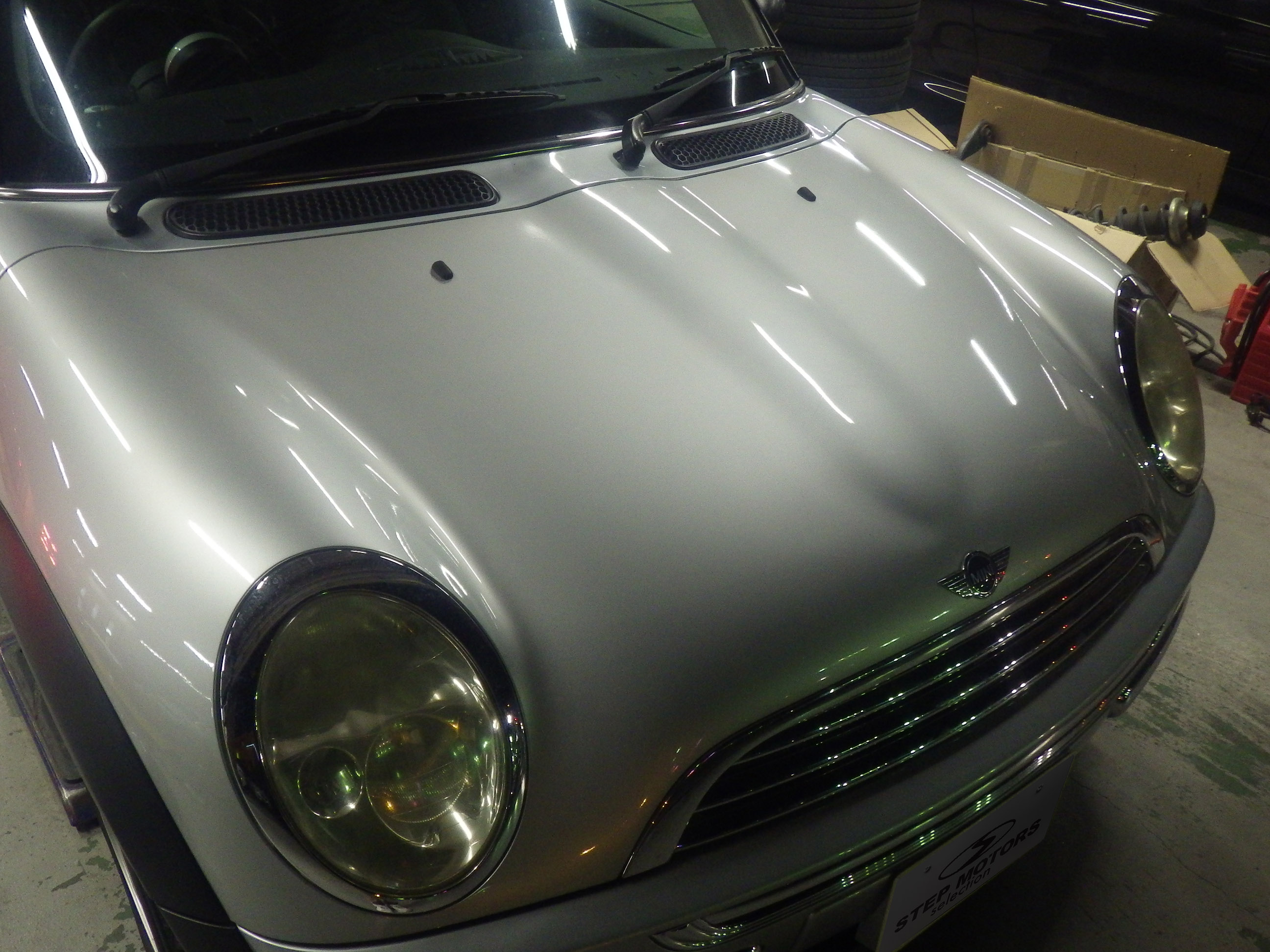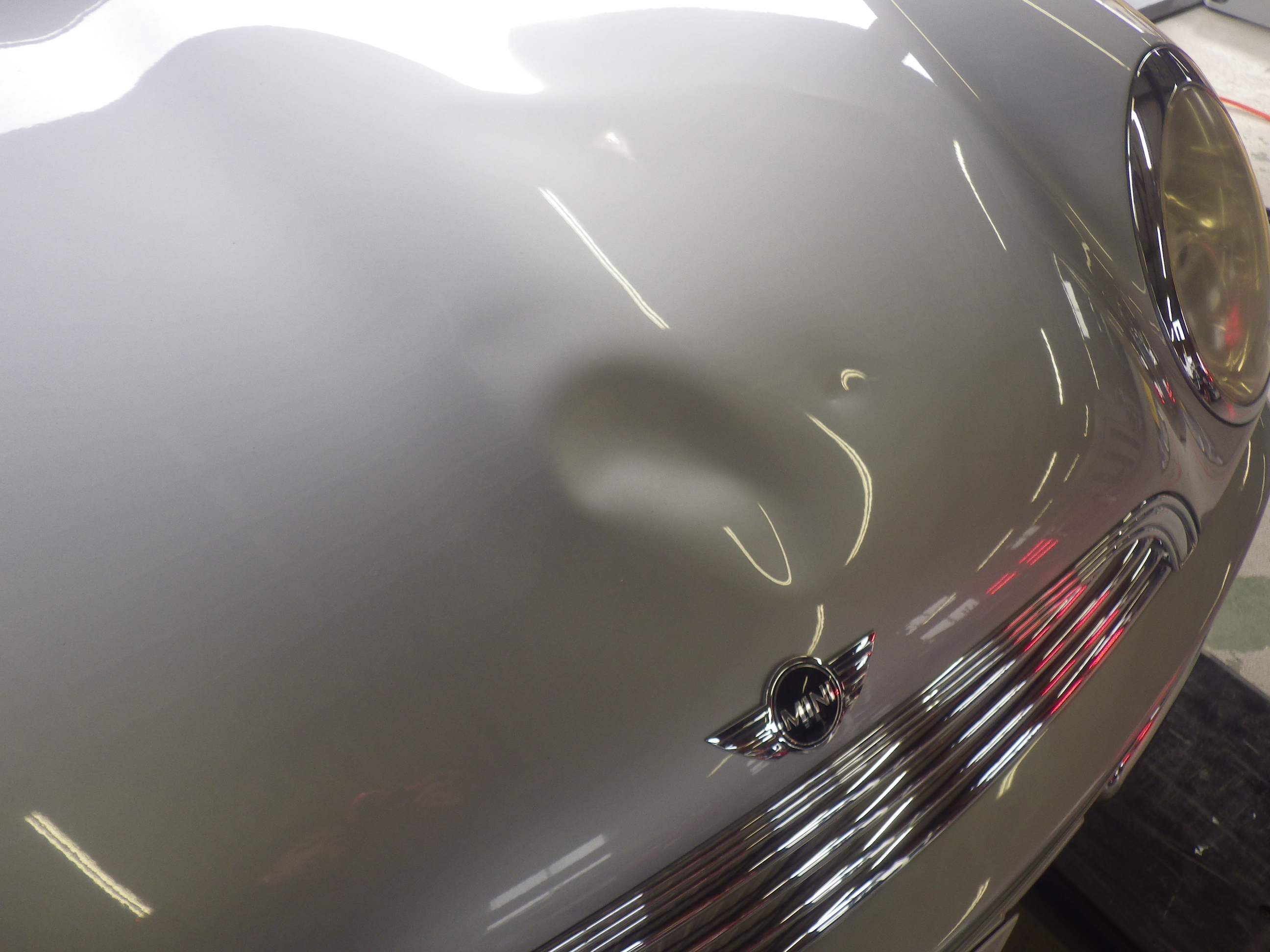 【鈑金塗装】【事故】兵庫県神戸市、M様、2004y、MINI、R50、リアバンパー損傷ボンネットへこみ修理レポートです!ありがとうございました。