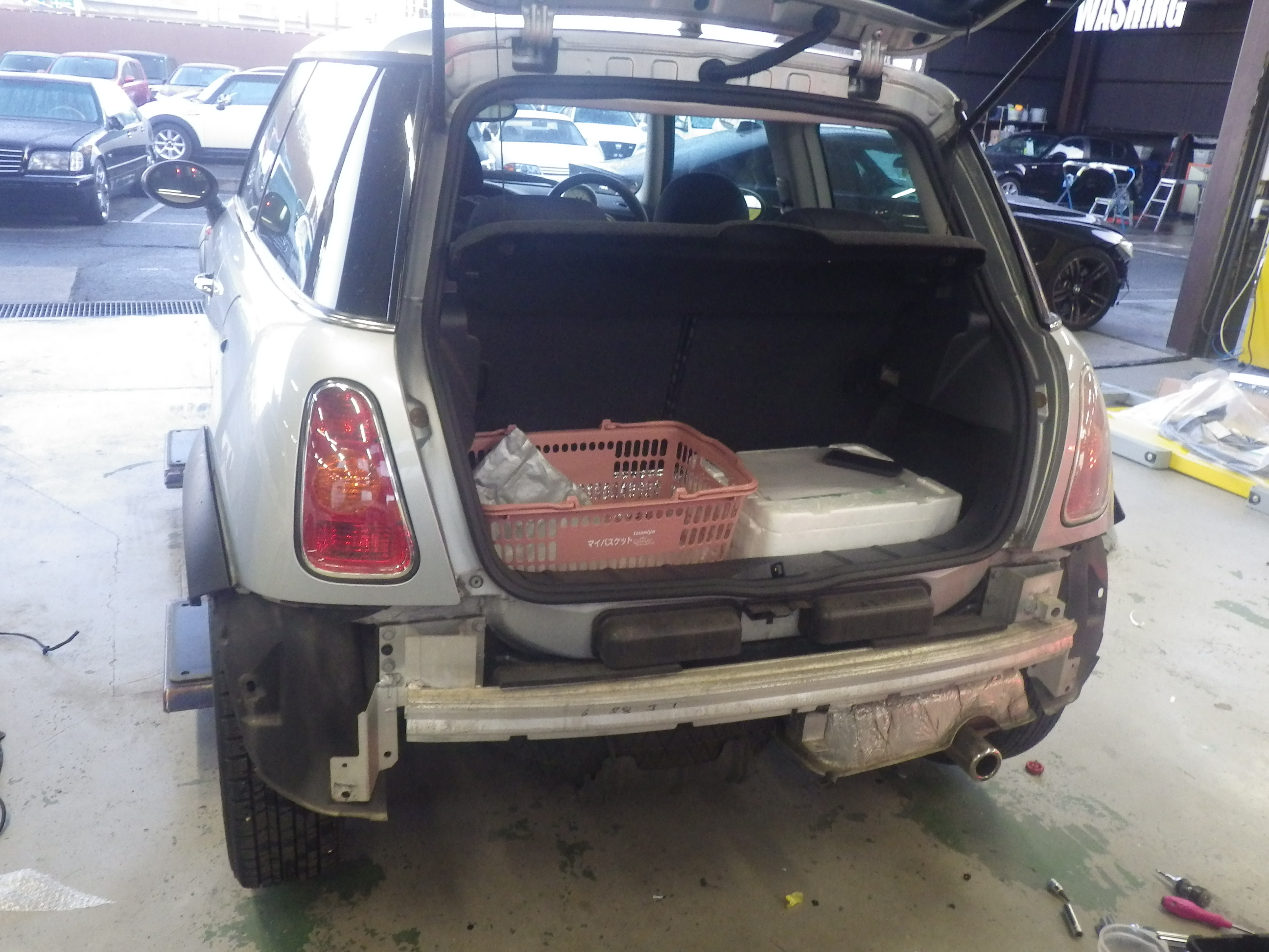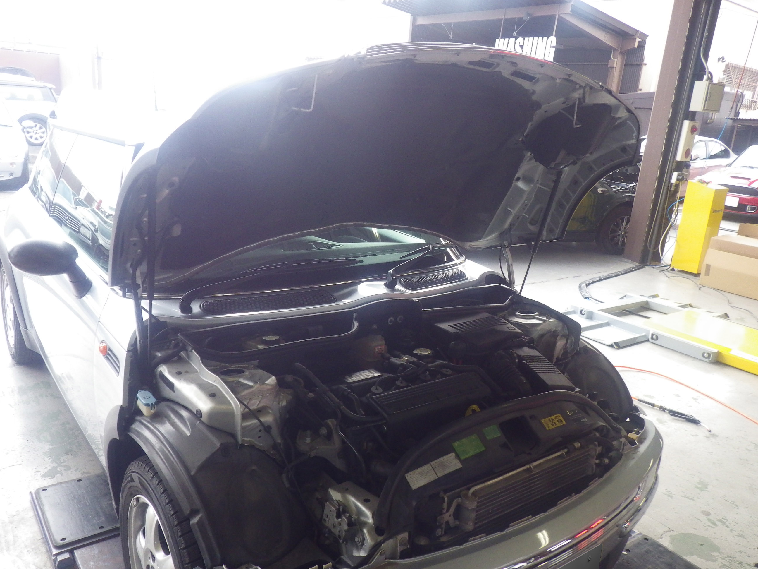 Home » 未分類 » 【鈑金塗装】【事故】兵庫県神戸市、M様、2004y、MINI、R50、リアバンパー損傷ボンネットへこみ修理レポートです!ありがとうございました。