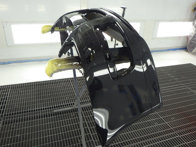 ベースコート(黒)、トップコート(クリヤー)の順に塗装作業を行いました。