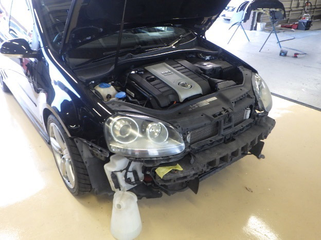 右フロント廻り損傷でのお預かりになります。 まず初めに、ホイールへの損傷があったので、足廻りの計測作業を行いました。 足廻りの計測を行ない、数値に問題が無い事を…
