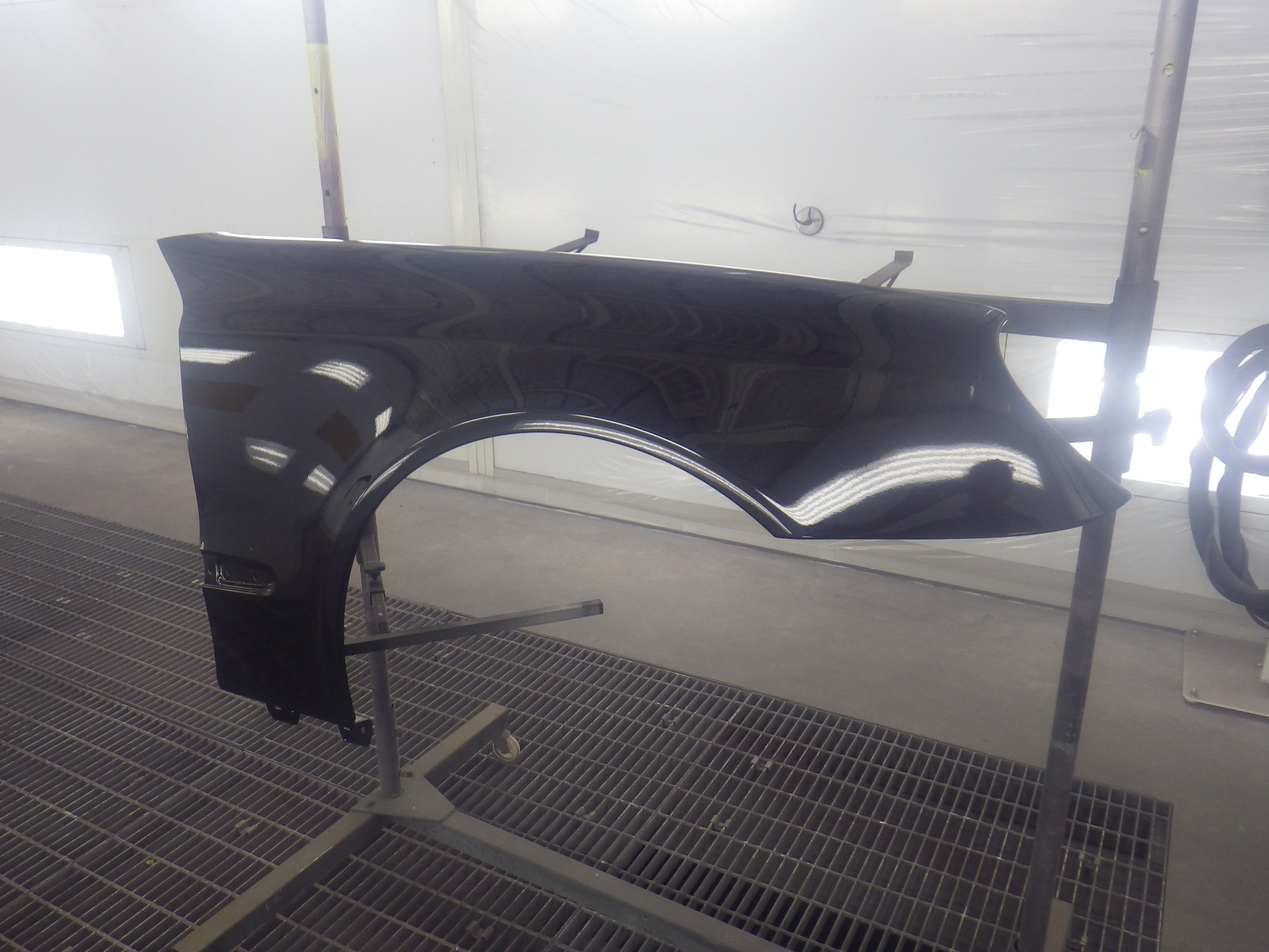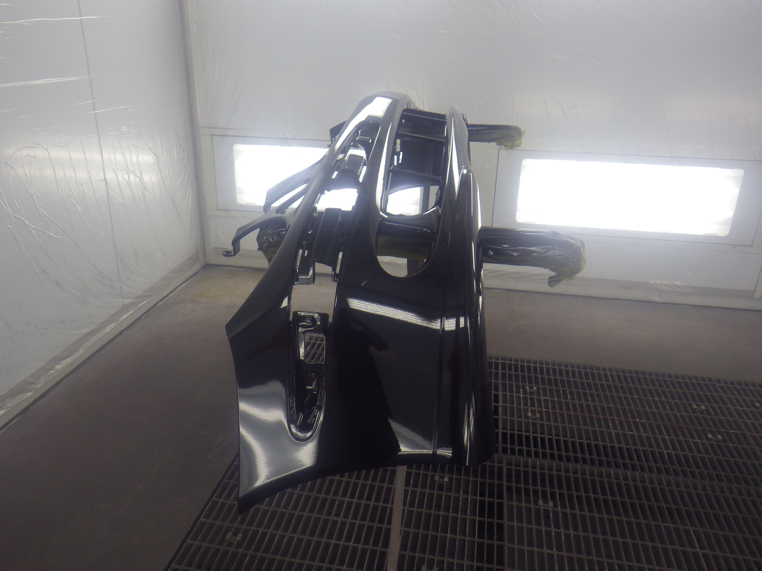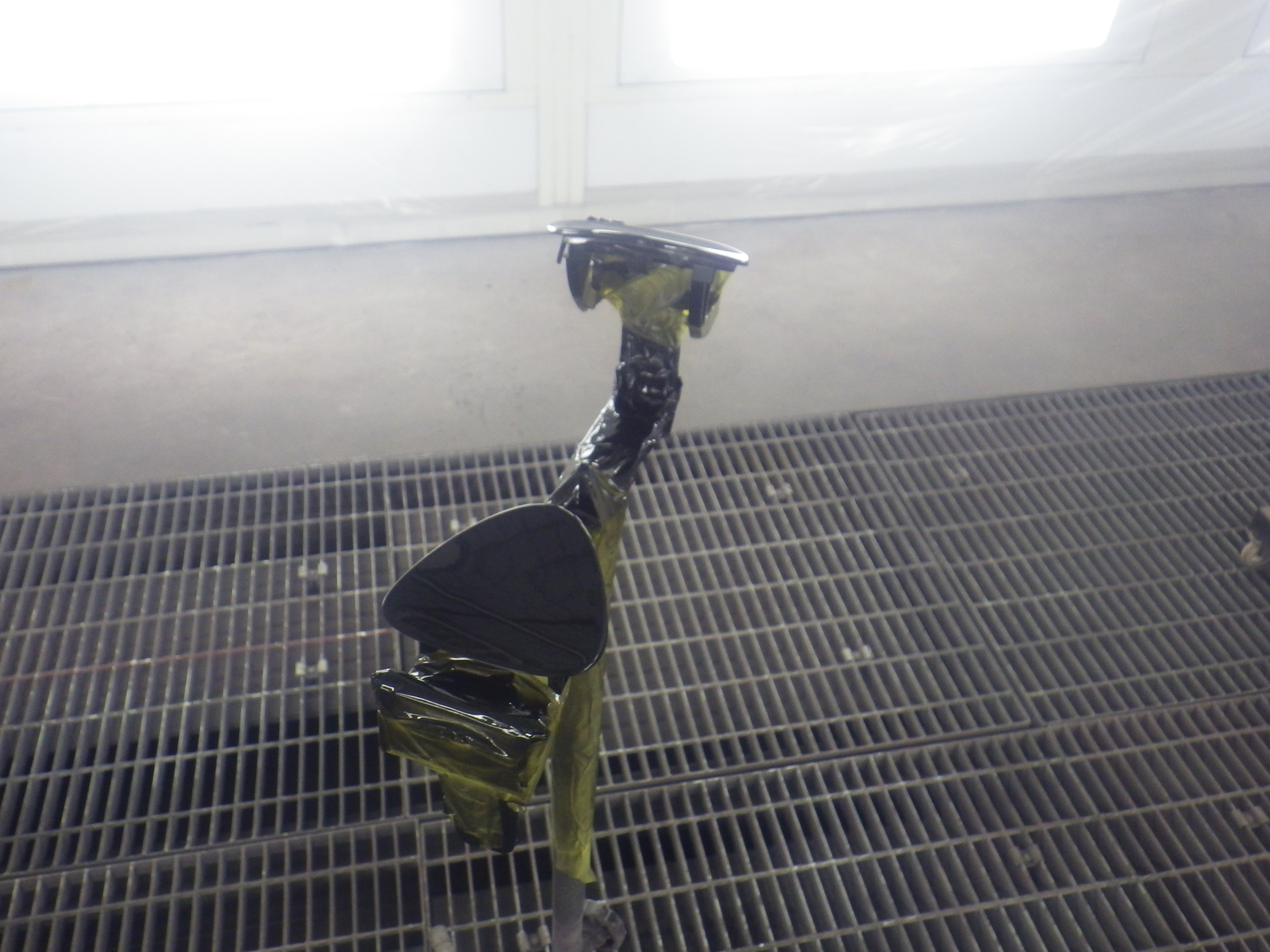 その後、ベースコート(黒)、トップコート(クリヤー)の順に塗装作業を行いました。