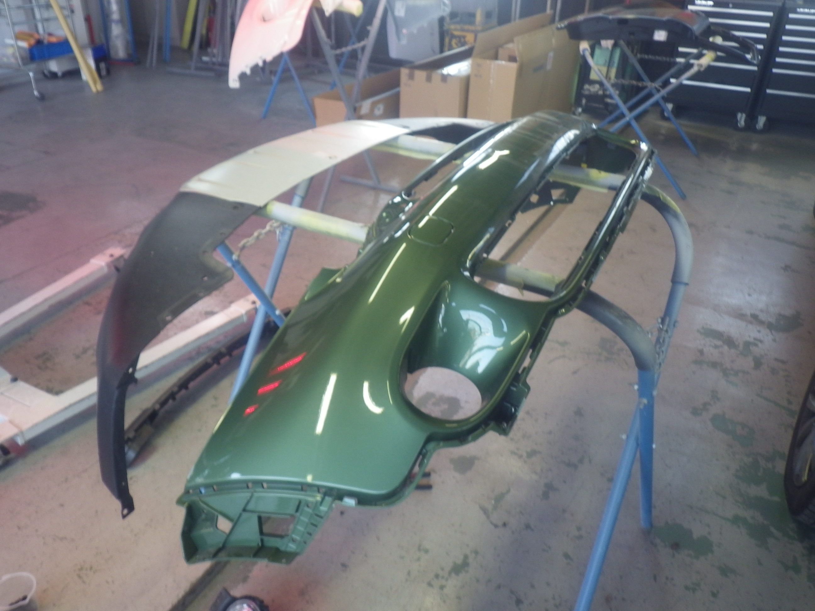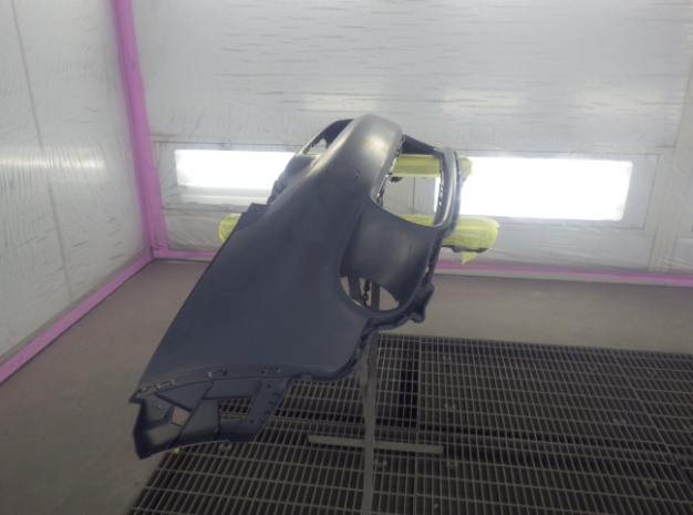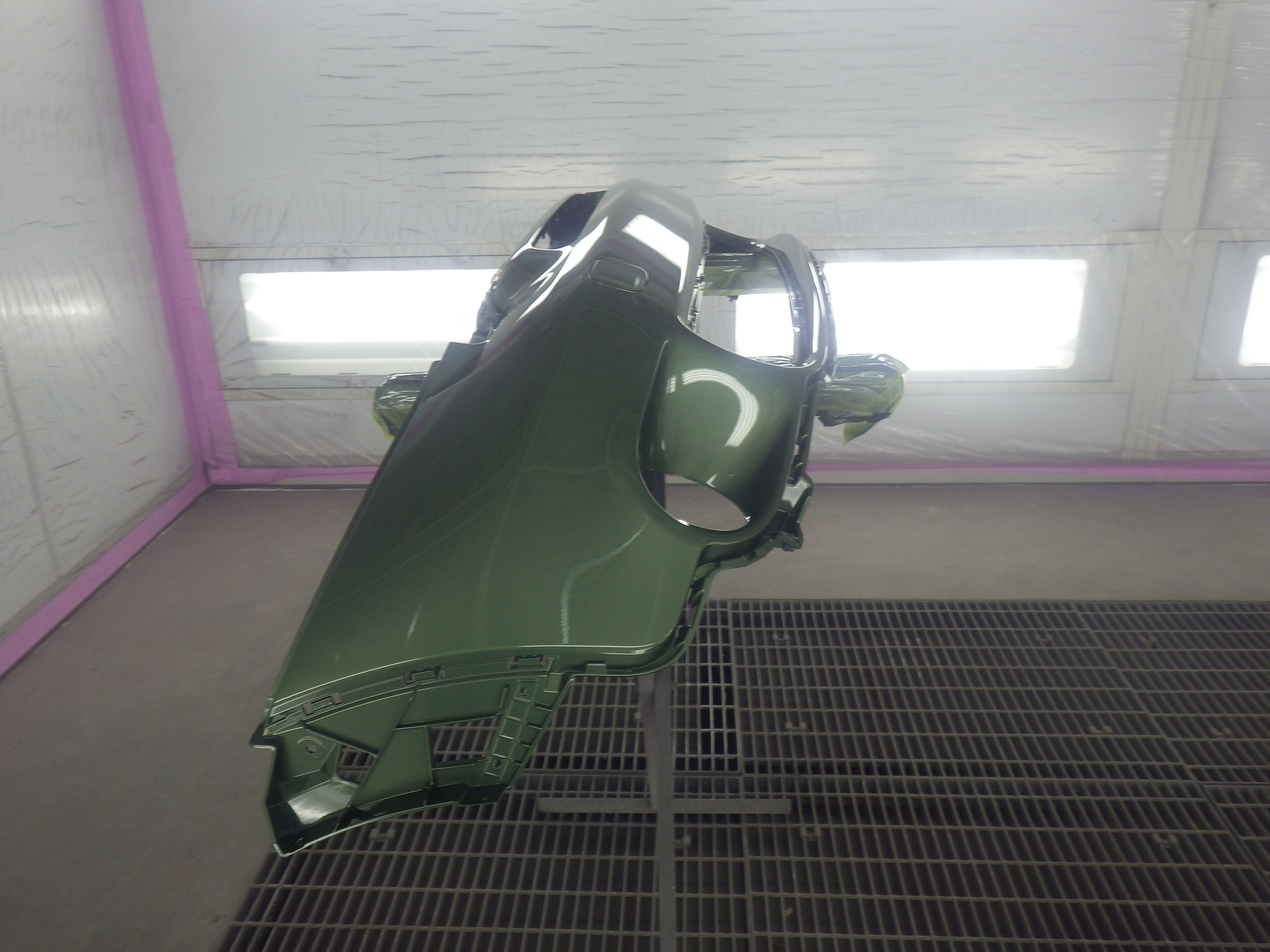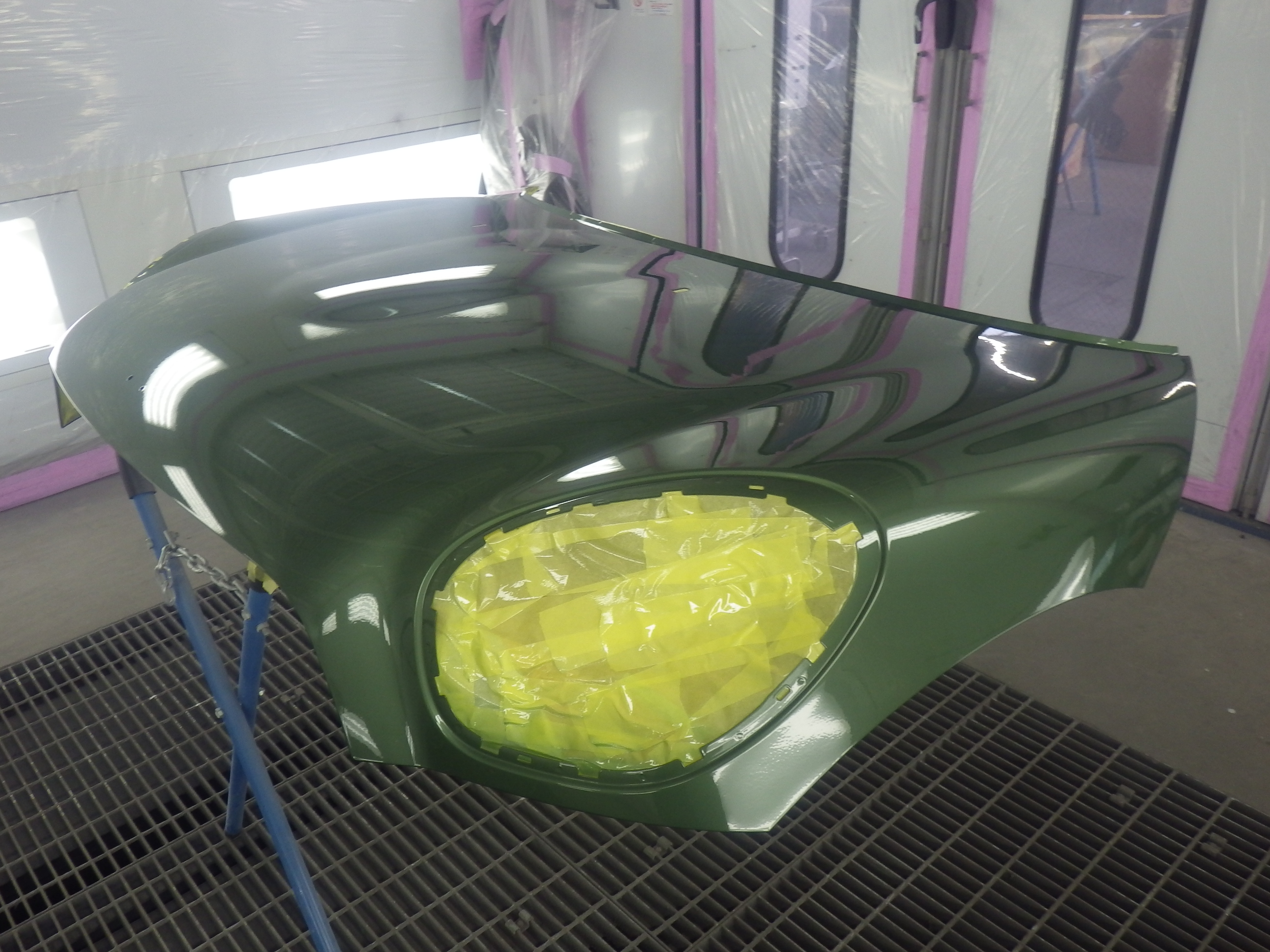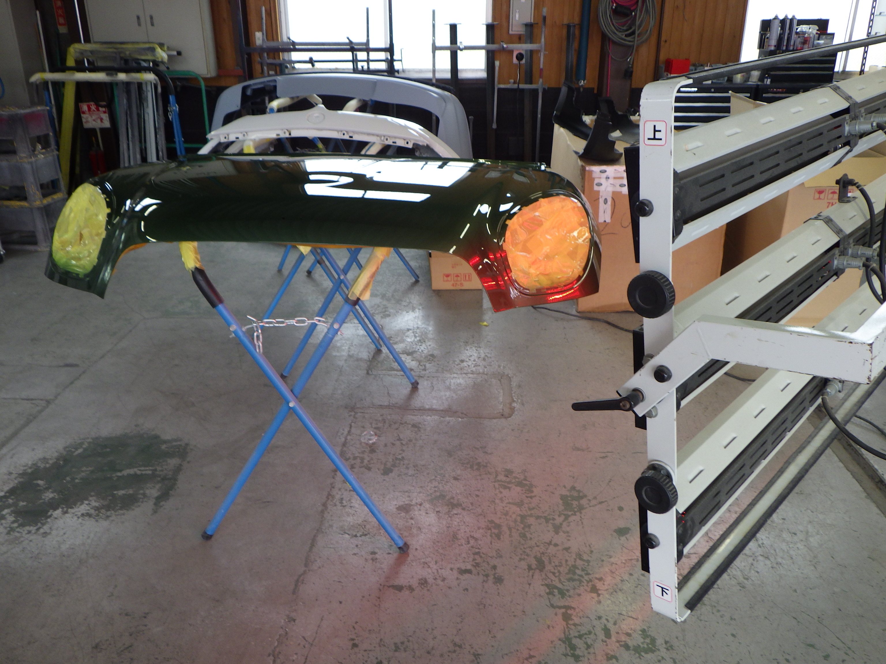 ベースコート(緑)、トップコート(クリヤー)の順に塗装作業を行いました。