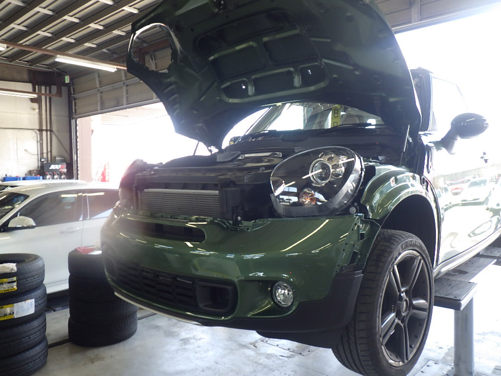 Home » 未分類 » 【鈑金塗装】【事故】兵庫県神戸市、N様、2015y、MINI、クロスオーバー、R60、フロントバンパーボンネット損傷へこみ修理レポートです!ありがとうございました。
