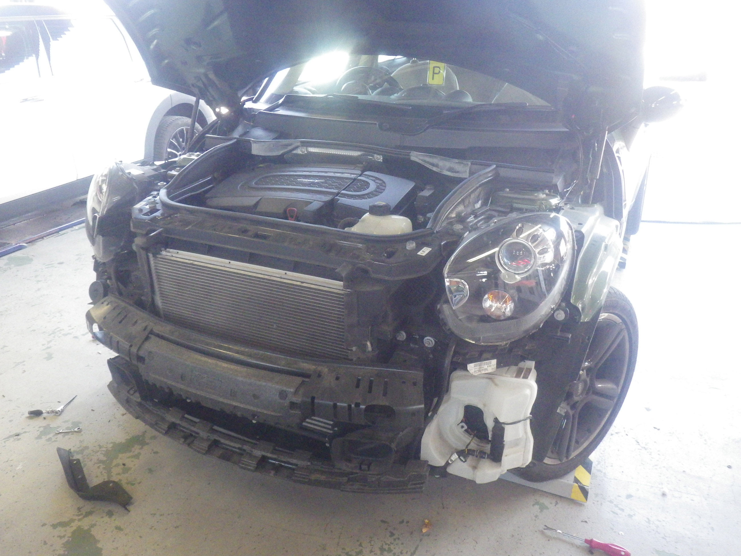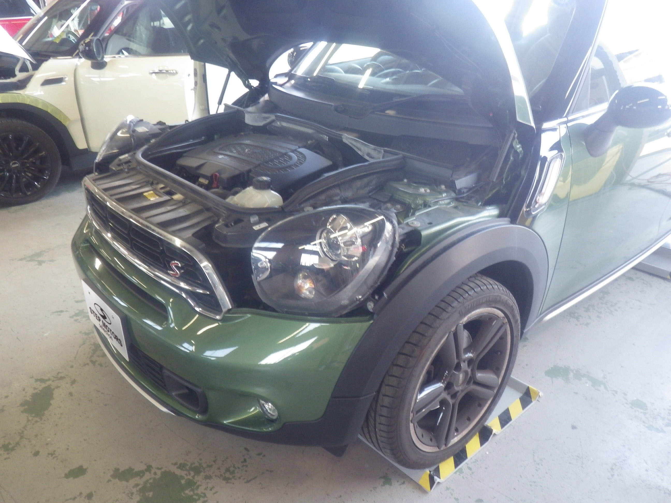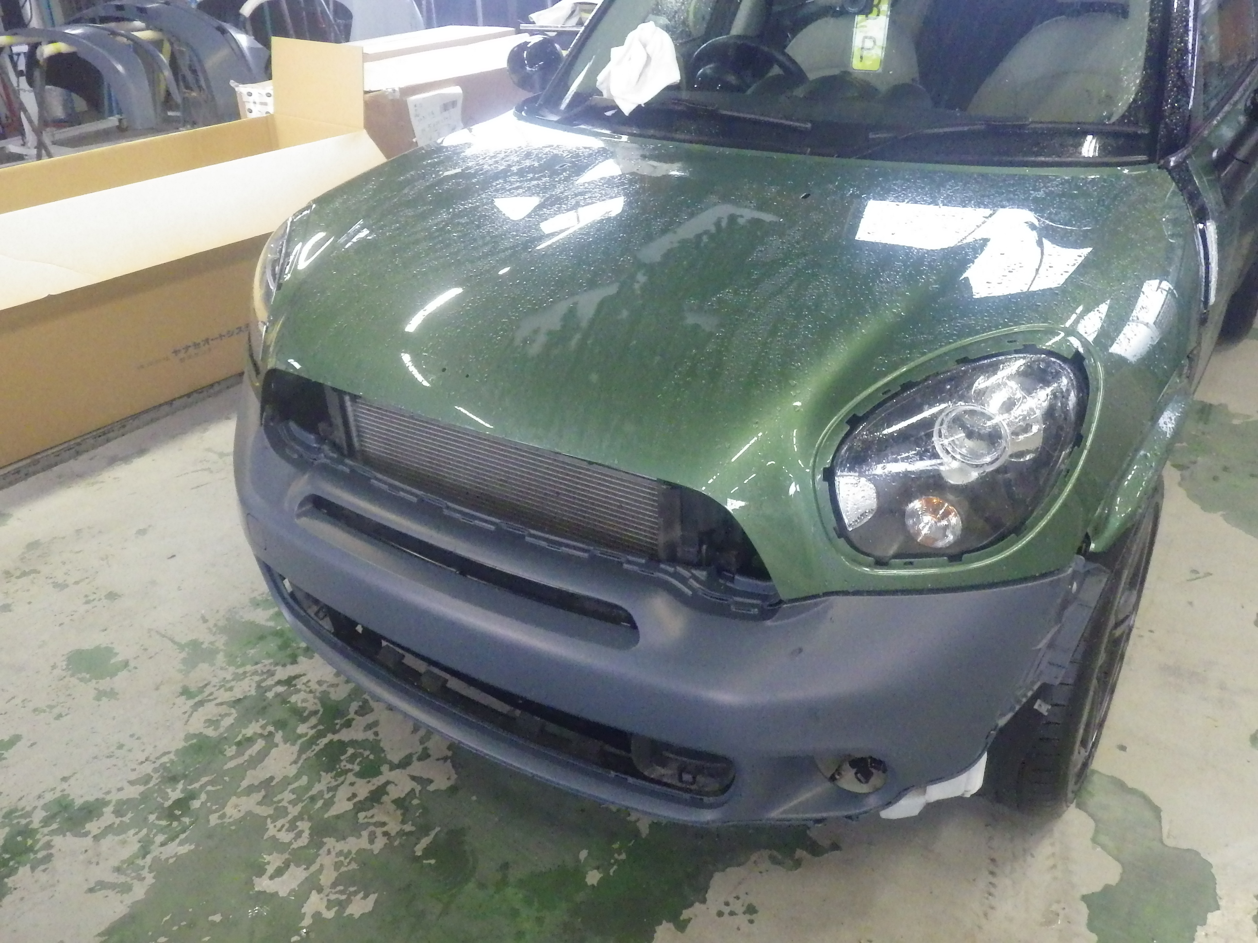 【鈑金塗装】【事故】兵庫県神戸市、N様、2015y、MINI、クロスオーバー、R60、フロントバンパーボンネット損傷へこみ修理レポートです!ありがとうございました。