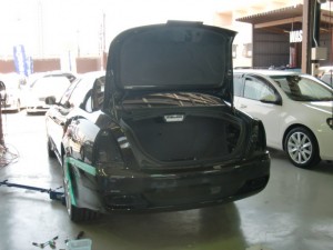 テールランプ、リヤバンパー一部取外し作業の後、リヤフェンダー全体の足付け作業を進めていきました。