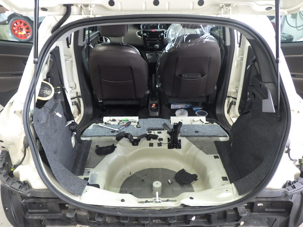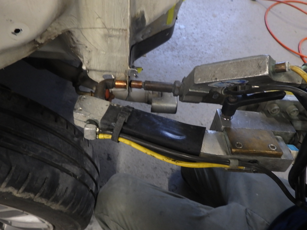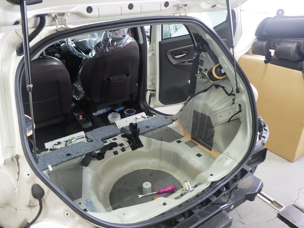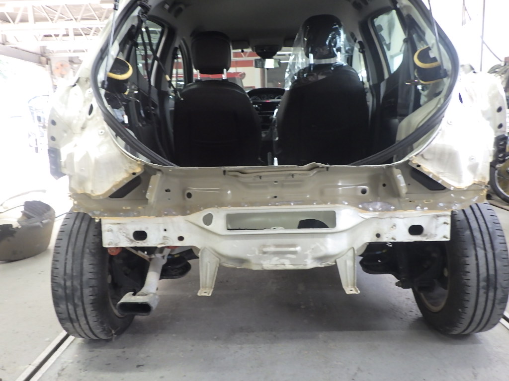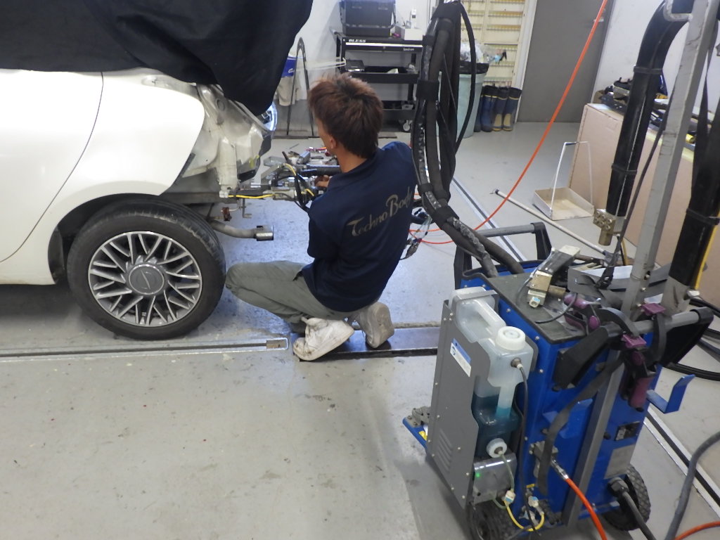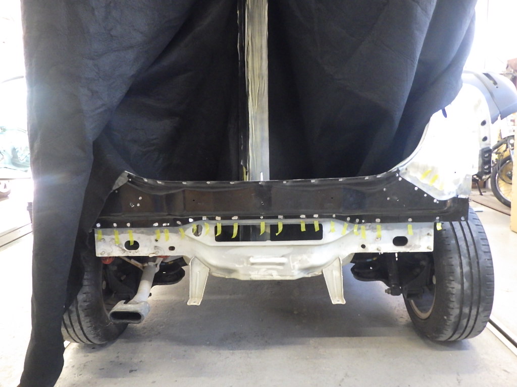 仮合わせ作業の後、バックパネルにスポット溶接作業を行いました。