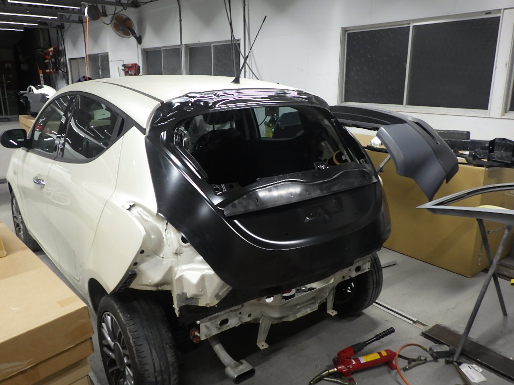 切り離し作業の後、バックパネル、リヤゲート、リヤバンパー、テールの順に仮合わせ作業を行いました。