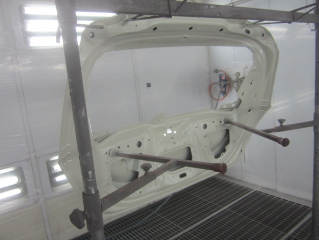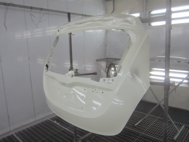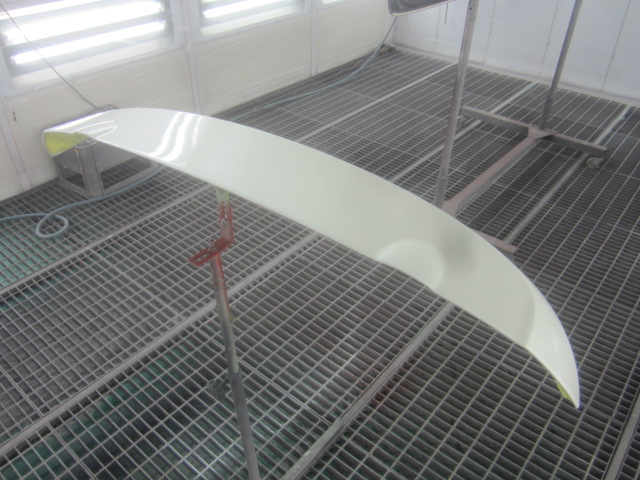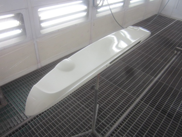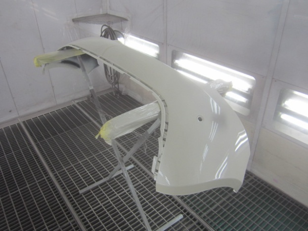 プライマーの塗装作業の後、ベースコート(白)、トップコート(クリヤー)の順に