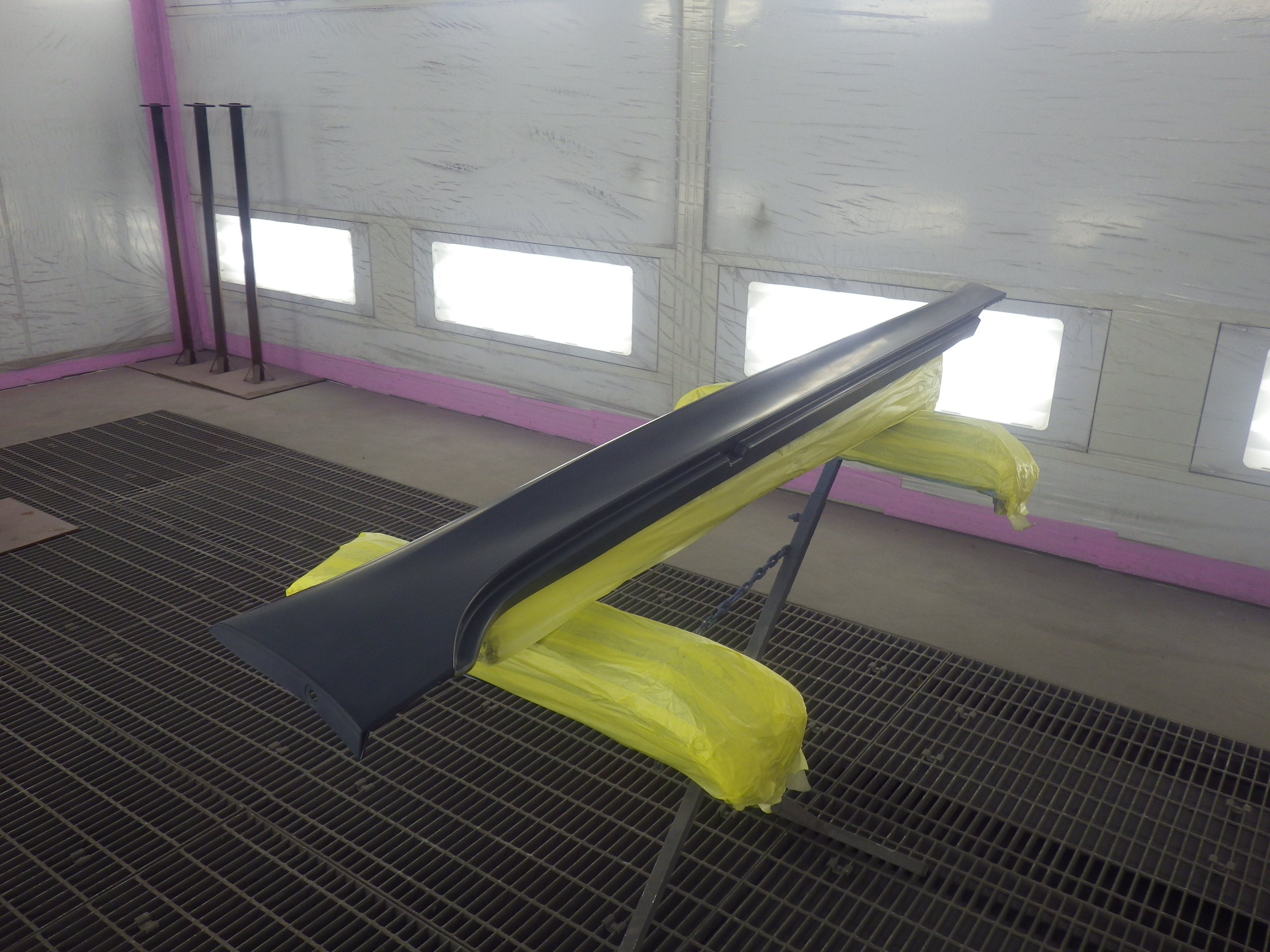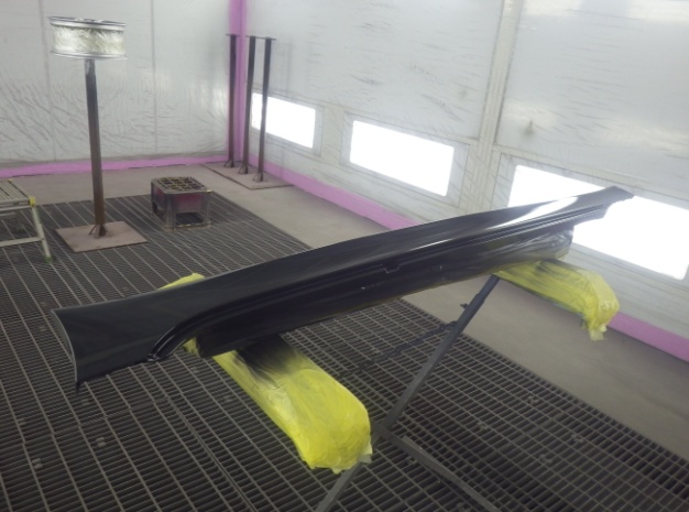 ベースコート(黒)、トップコート(クリヤー)の順に塗装作業を行いました。