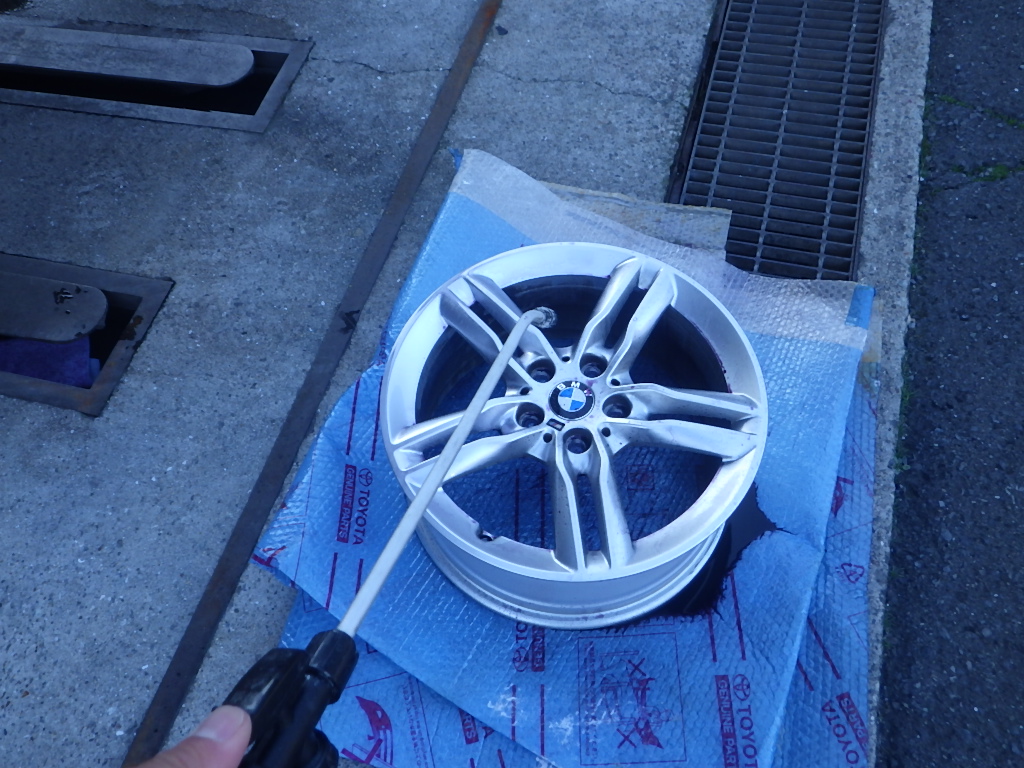 ホイールの修正作業を行う為、鉄粉除去を行いました。