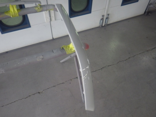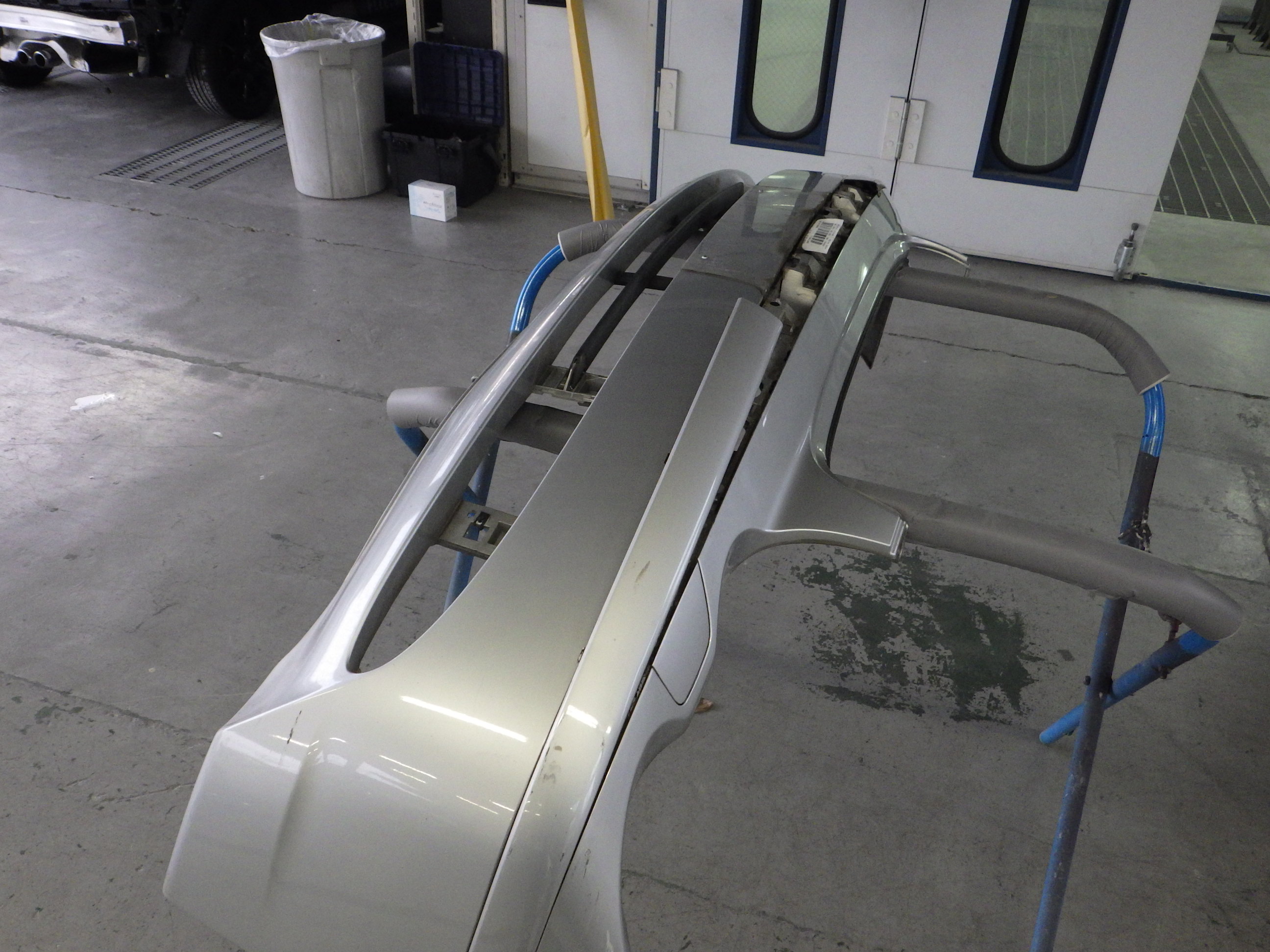 サフェーサー乾燥の後、新品部品の足付け作業、脱脂作業、エアブローを行い、