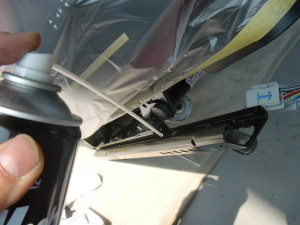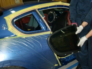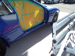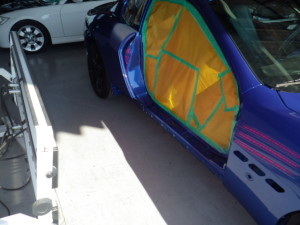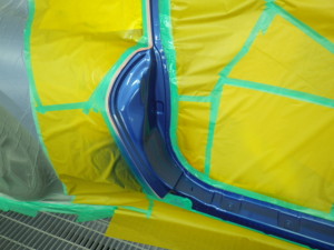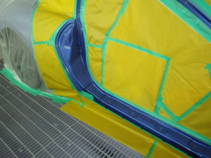 開口部の塗装乾燥の後、サフェーサーの足付け作業、マスキング作業、脱脂作業、
