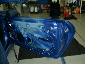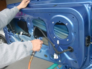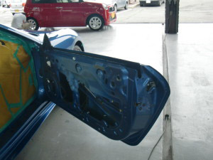 エアブローを行い、ドアの開口部の塗装作業を行いました。