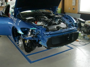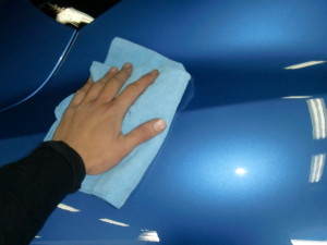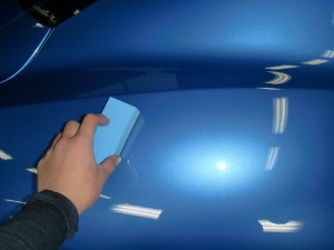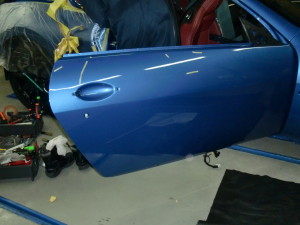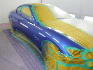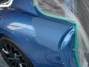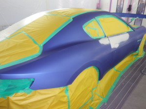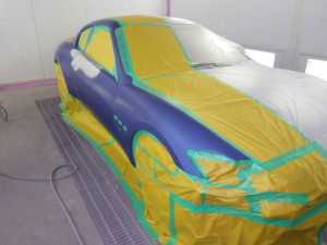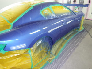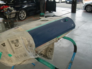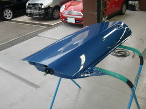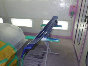 ベースコート(青)、トップコート(クリヤー)の順に塗装作業を行いました。