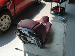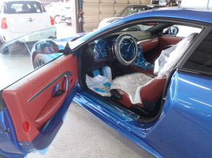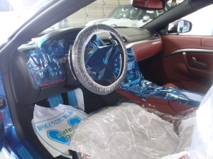 入庫時確認作業の後、室内のキズ汚れ防止の為に、ハンドル、シートカバー、