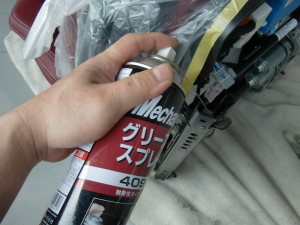 ガラスレギュレターも清掃作業の後、グリスを塗布しました。