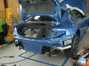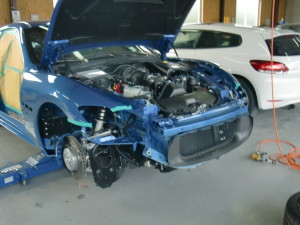 リヤバンパーテールランプ類、サイドスポイラーの取り付け作業、