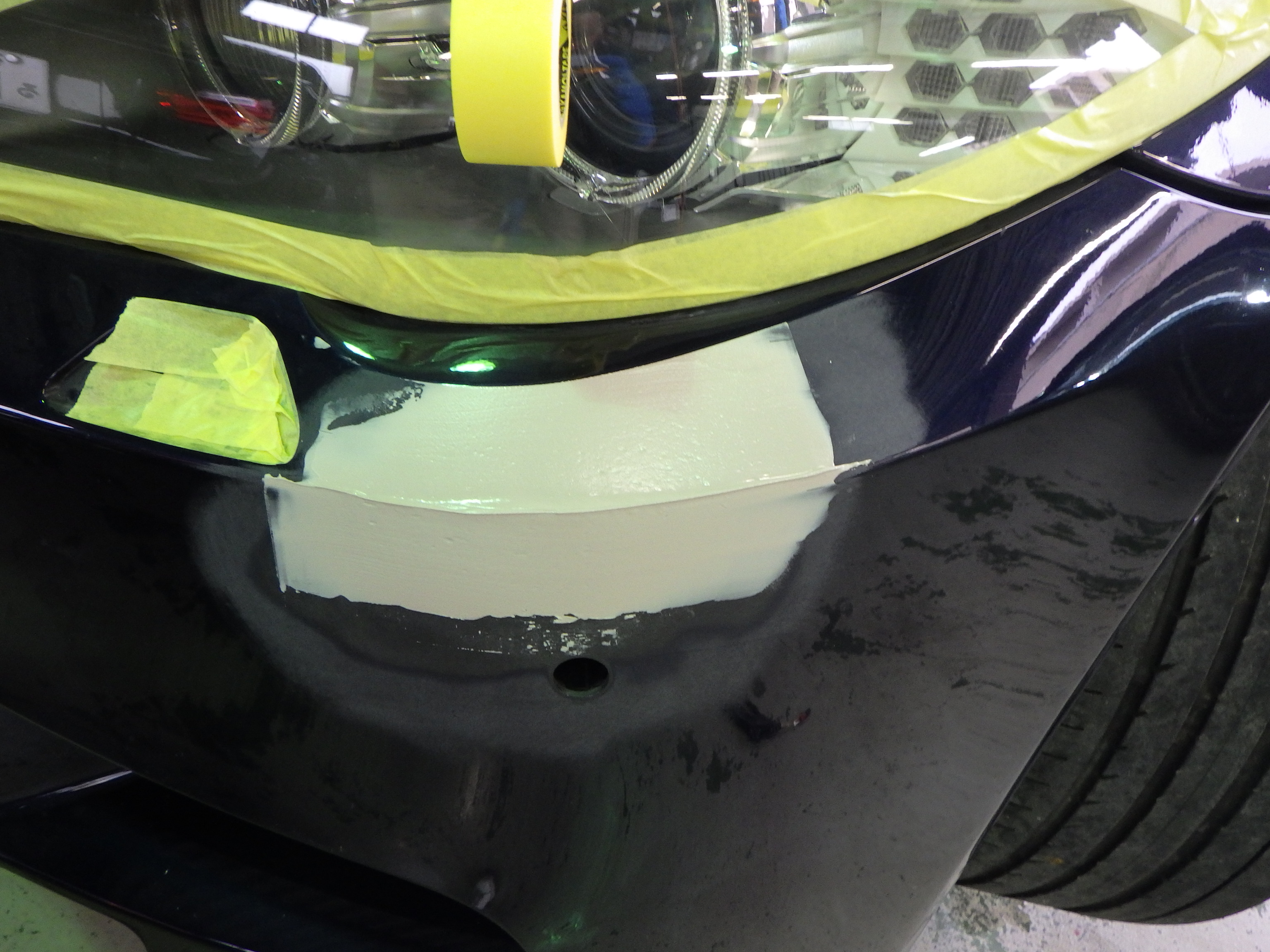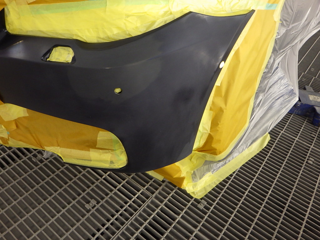 フロントバンパーの修正、パテ修正作業を行いました。