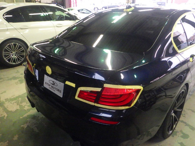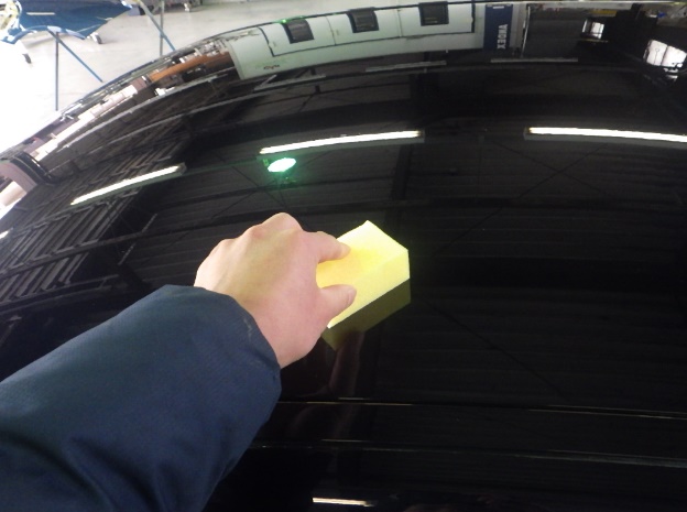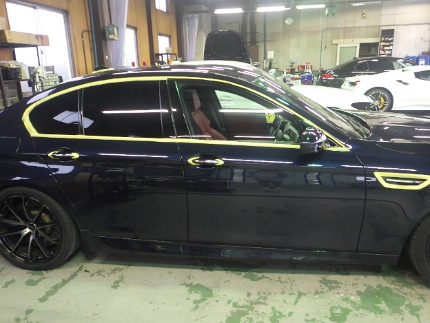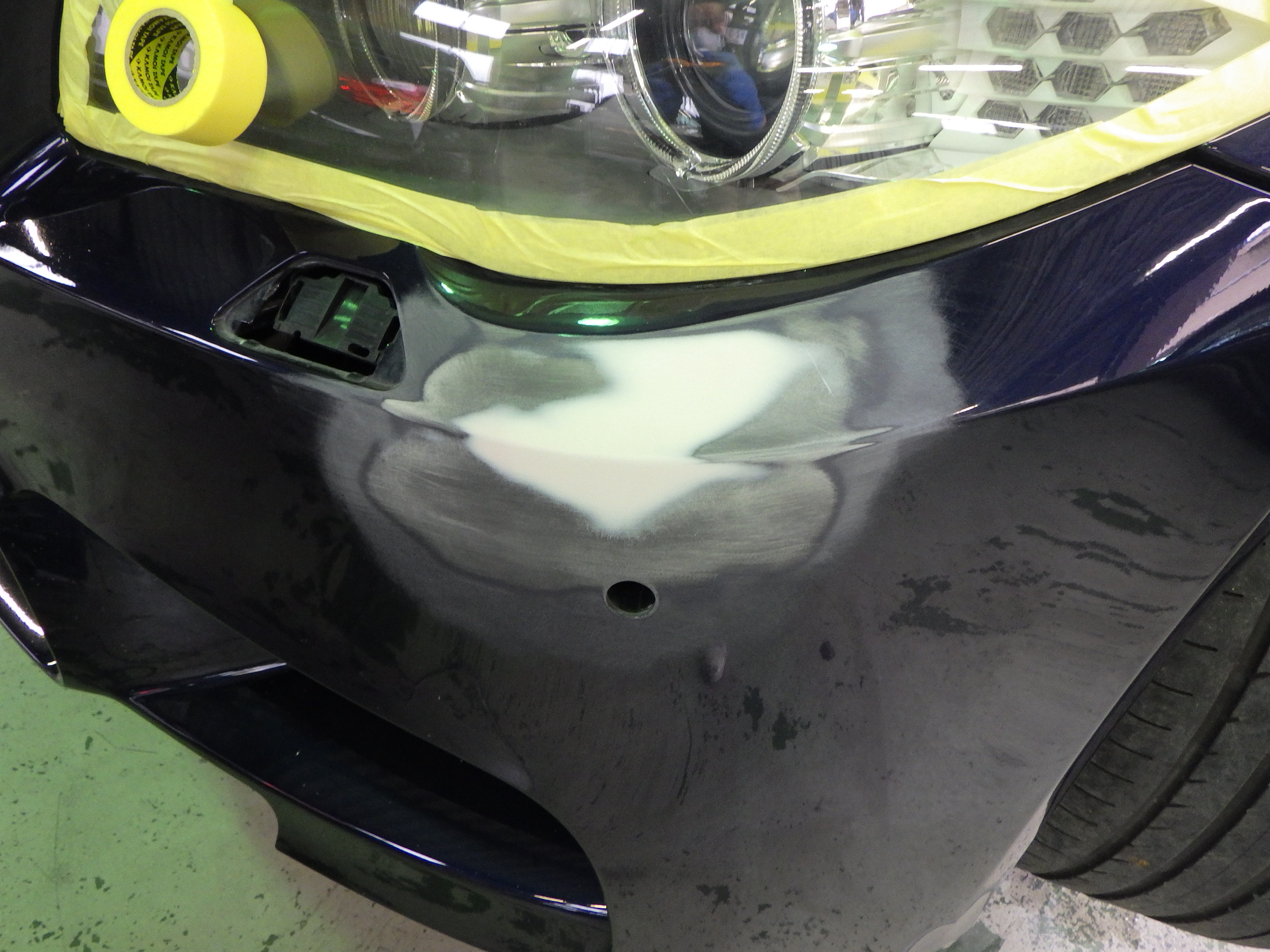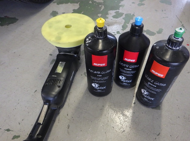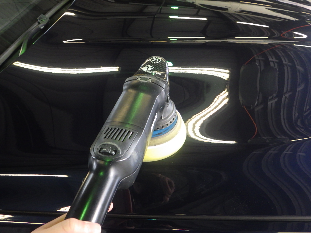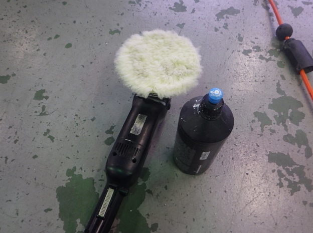 マスキング作業の後、ポリッシャーを使用して磨き作業を行いました。