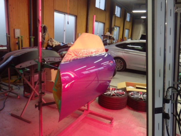 塗装乾燥の後、磨き作業、組み付け作業、コーティング施工、各種チェックを行い、完成です。