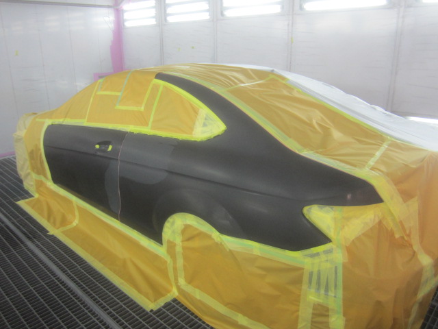 ベースコート(黒)、トップコート(クリヤー)の順に塗装作業を行いました。
