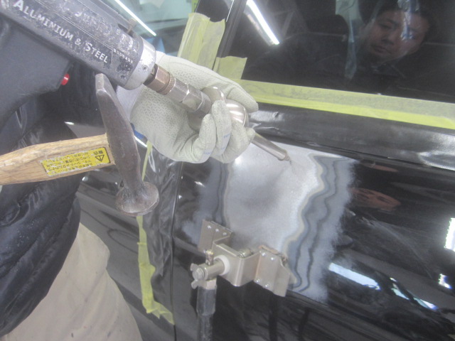 板金作業の後、マスキング作業、脱脂作業、エアブローを行い、