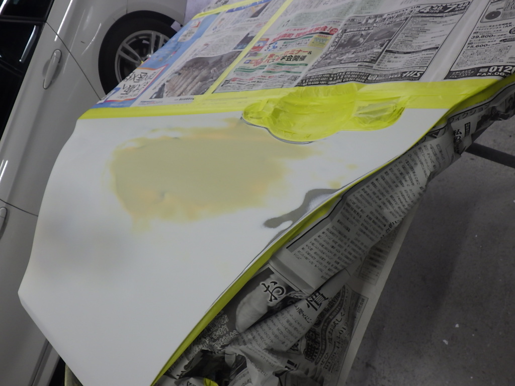 板金作業の後、パテ付け、サンディング作業を行いました。
