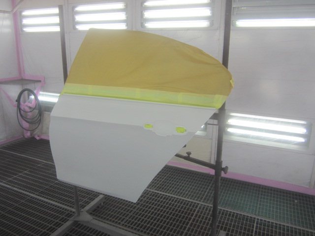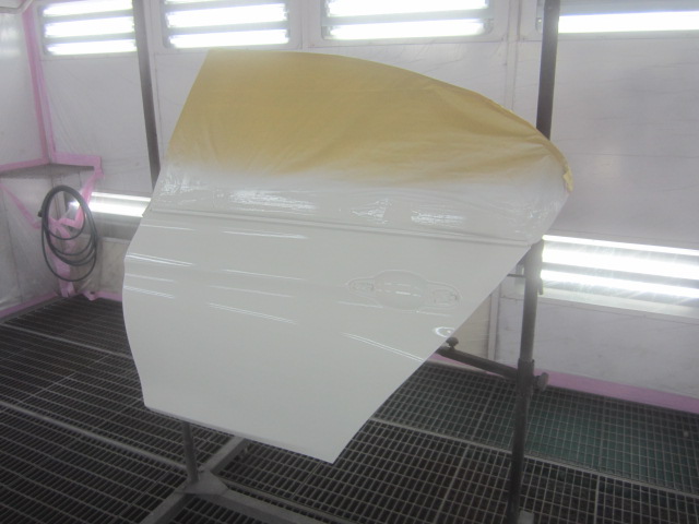 ベースコート(白)、トップコート(クリヤー)の順に塗装作業を行いました。