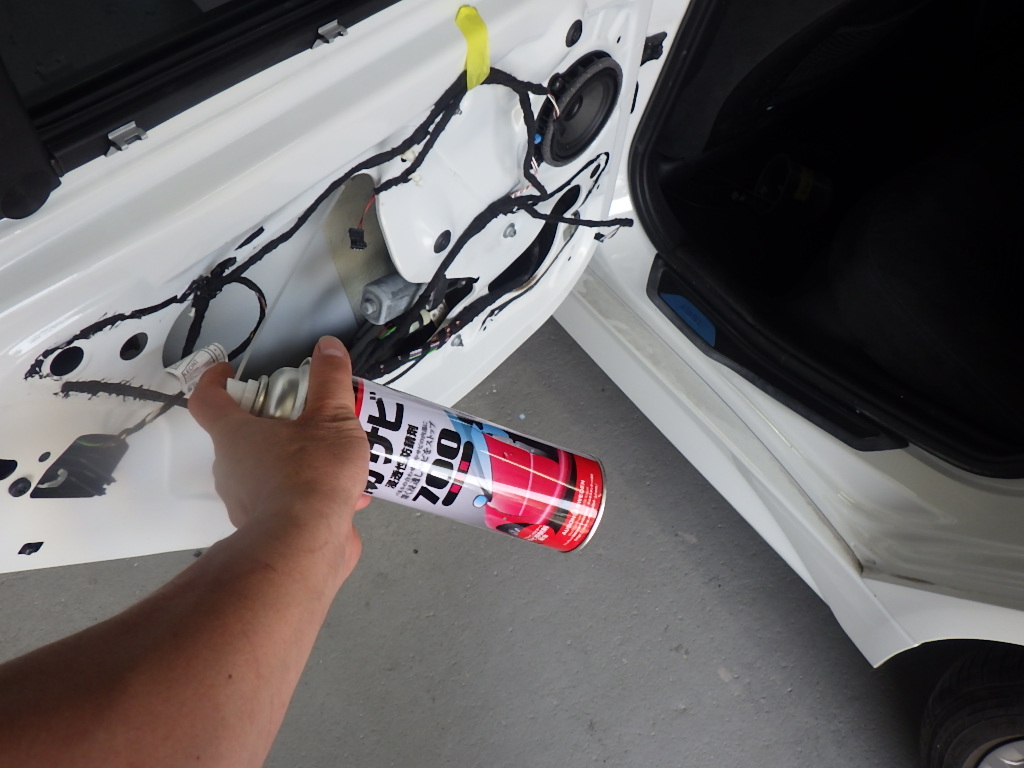 サンディング作業の後、マスキング作業、脱脂作業、エアブローを行い、
