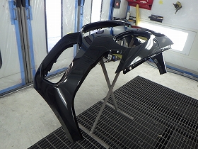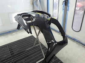 ベースコート(黒)、トップコート(クリヤー)の順に塗装作業を行いました。