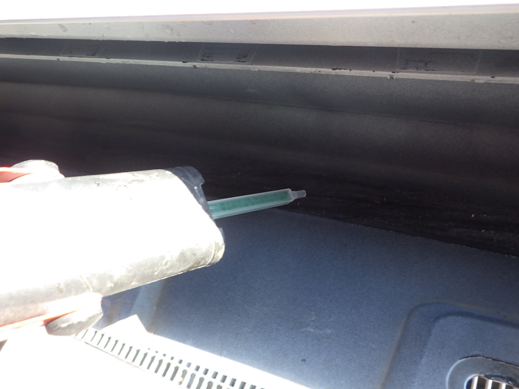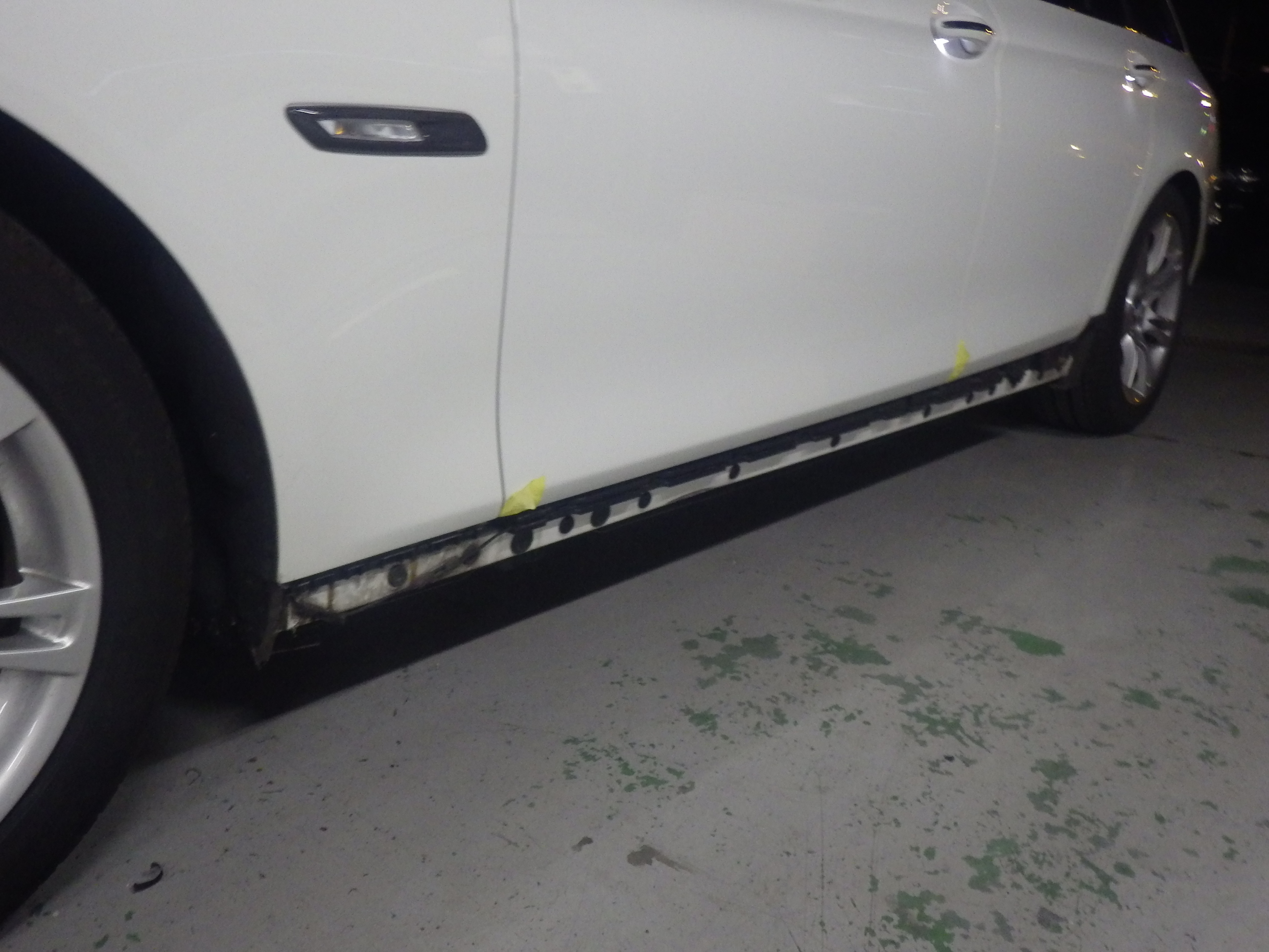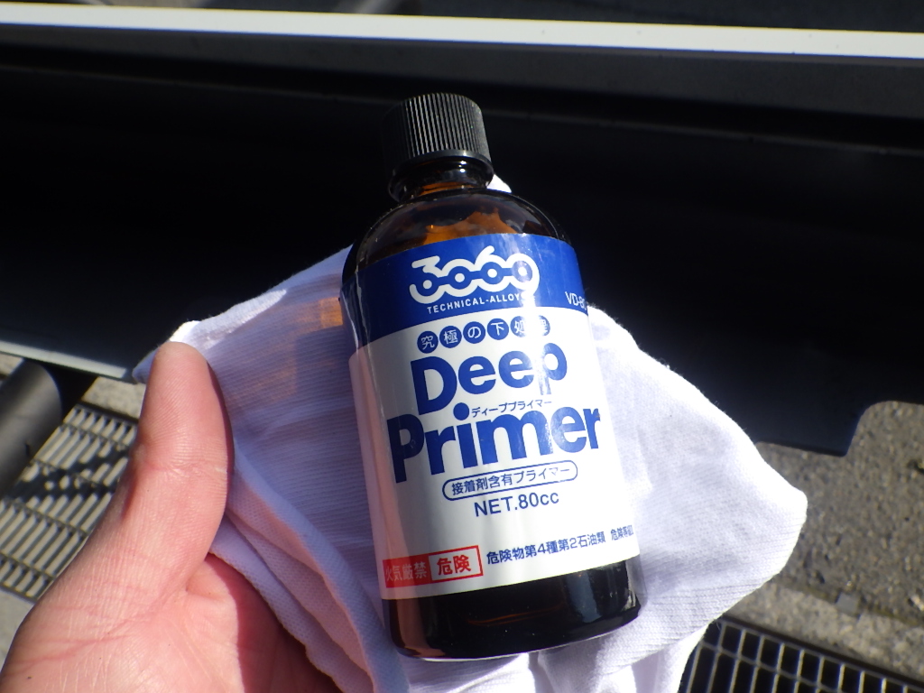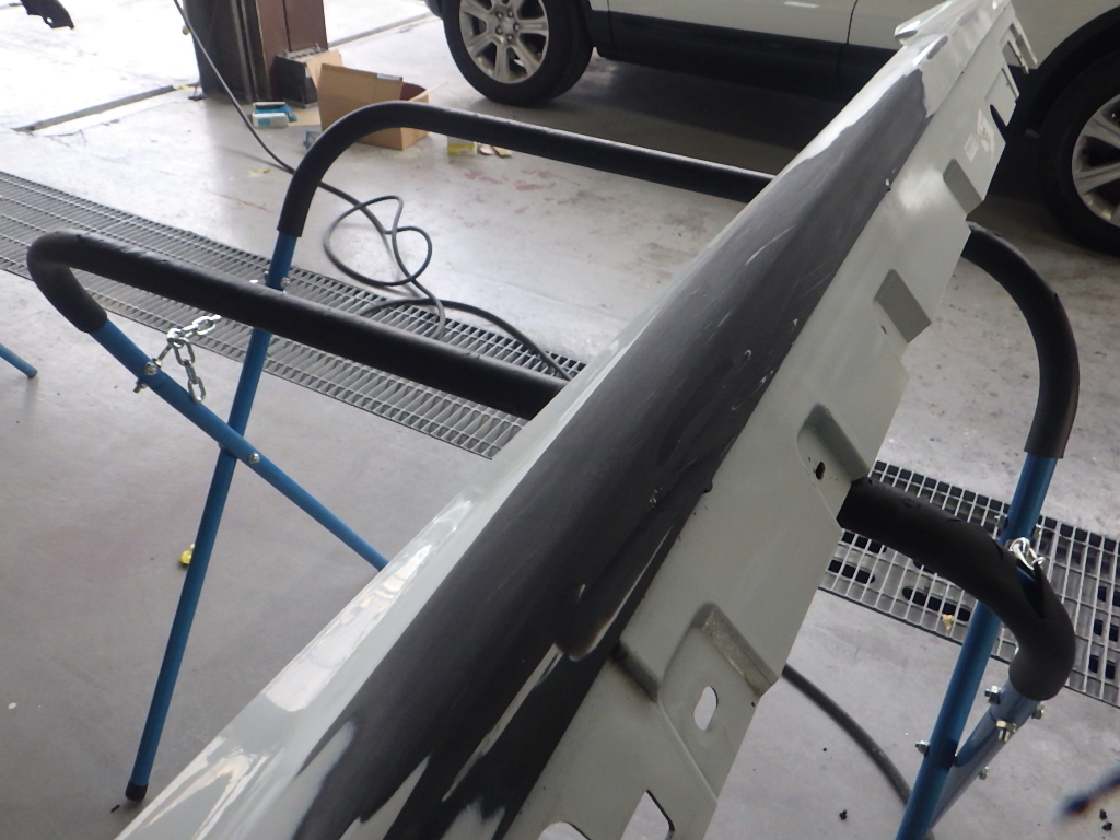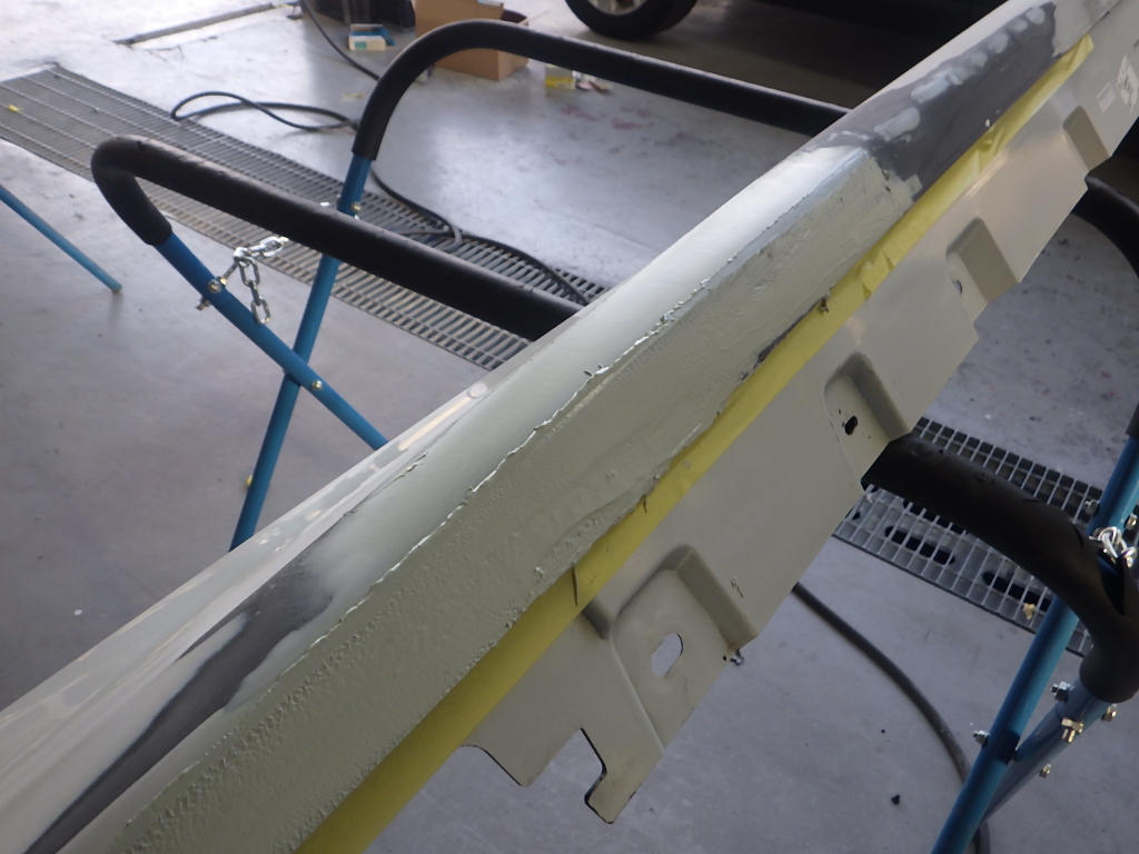 穴の開いている箇所の修正を行う為、足付け作業、プライマーの塗布作業、