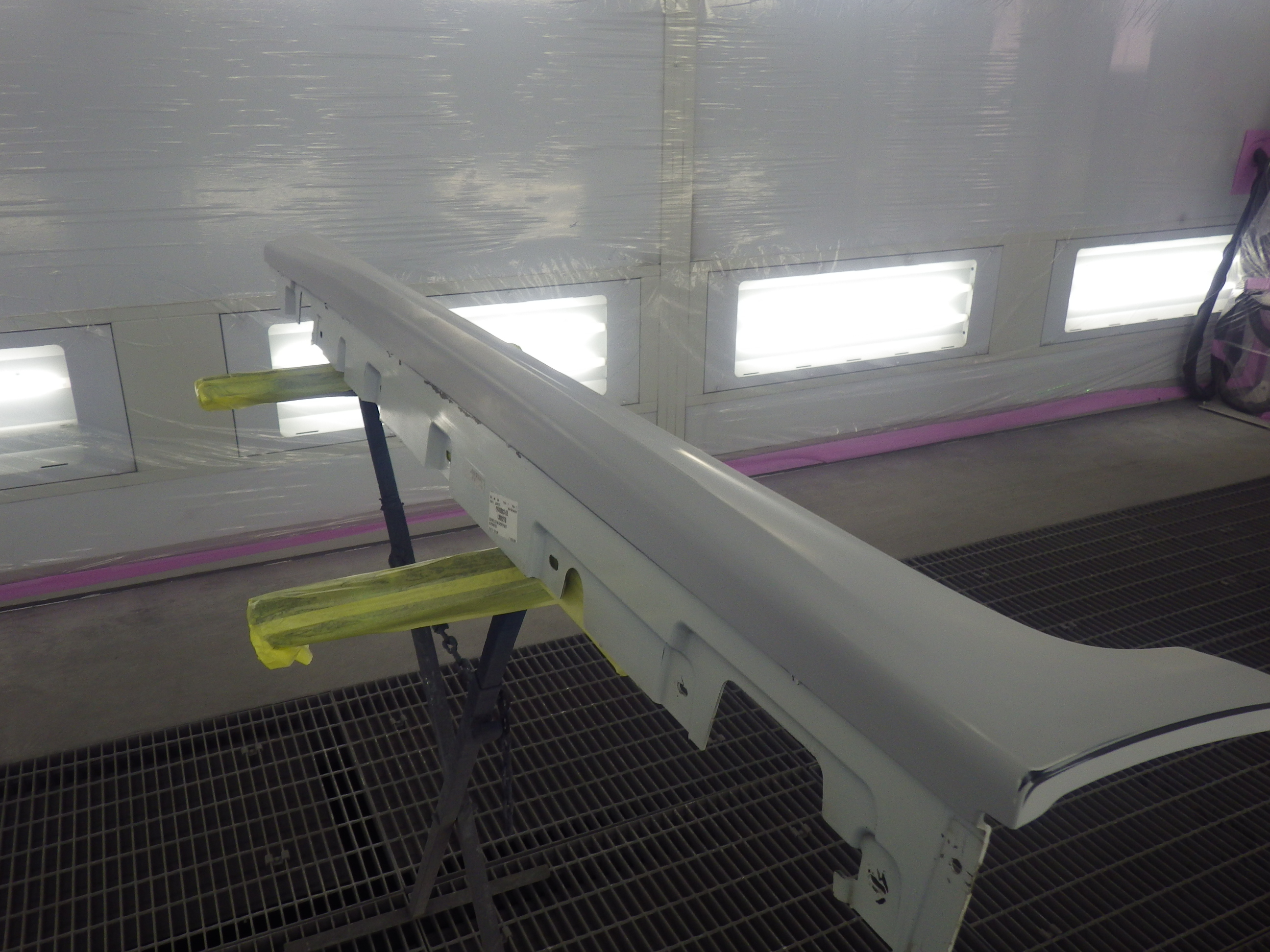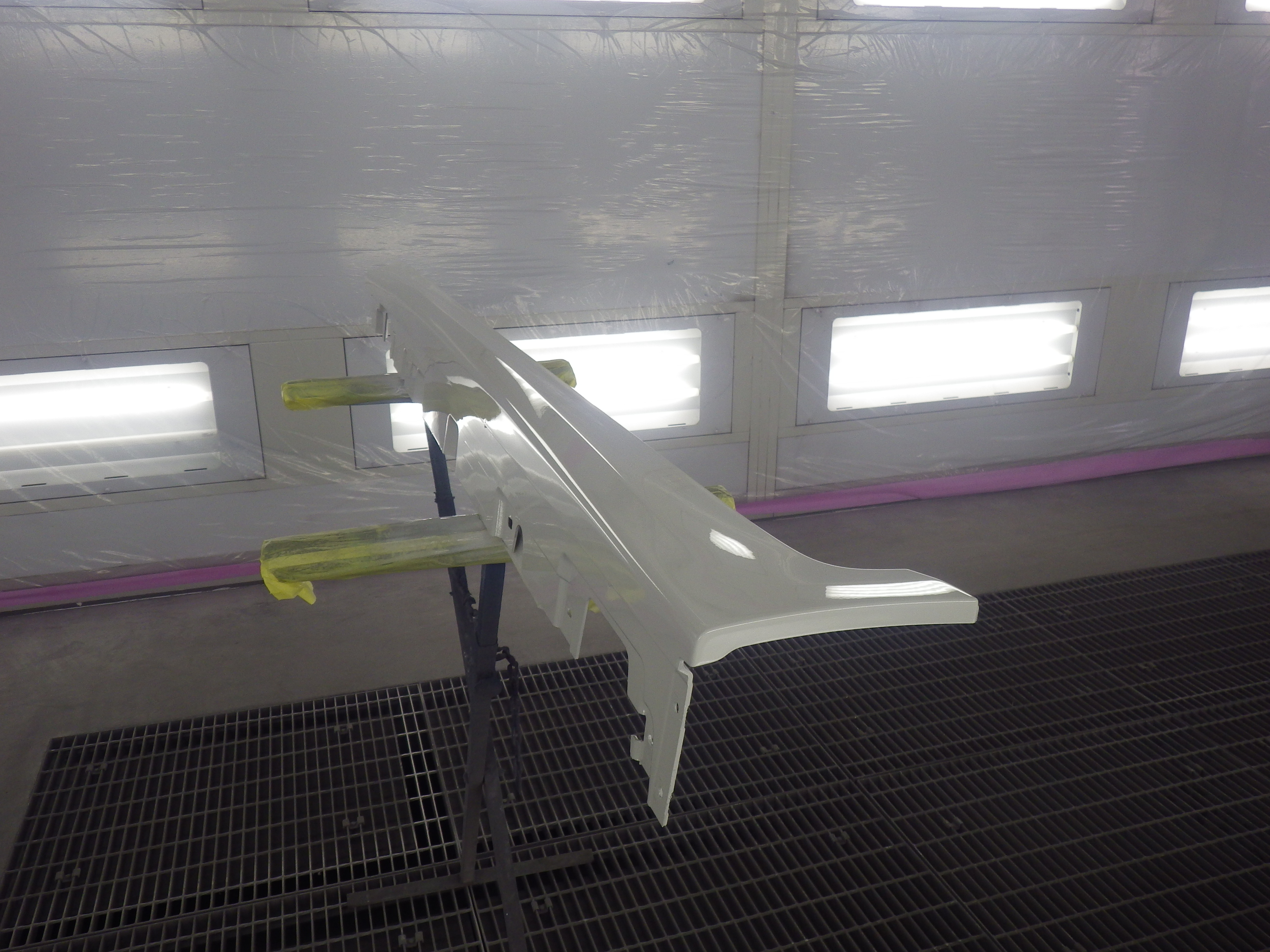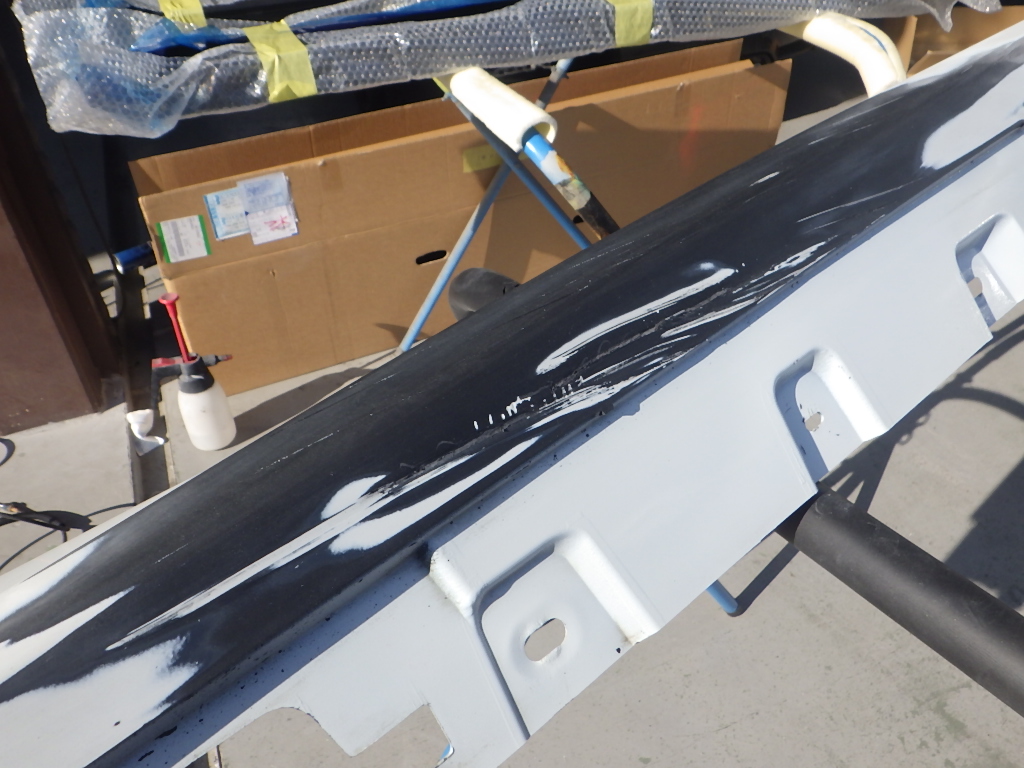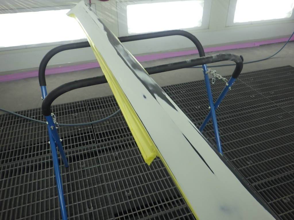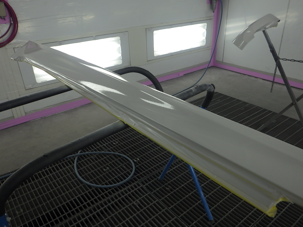ベースコート(白)、トップコート(クリヤー)の順に塗装作業を行いました。