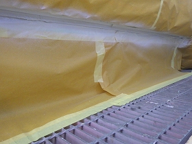 塗装準備(足付け、マスキング、脱脂、エアブロー)を行い、チッピングコートの塗布作業を行いました。