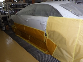 その後、ベースコート(白)、トップコート(クリヤー)の順に塗装作業を行いました。