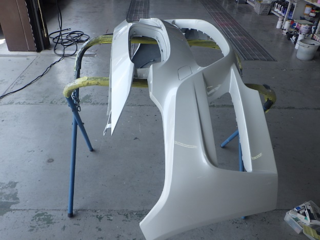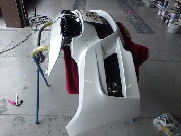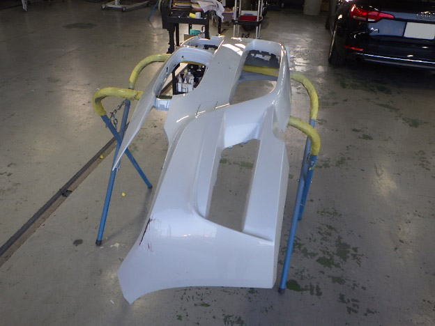 ベースコート(白、パール)、トップコート(クリヤー)の順に塗装作業を行いました。
