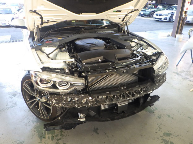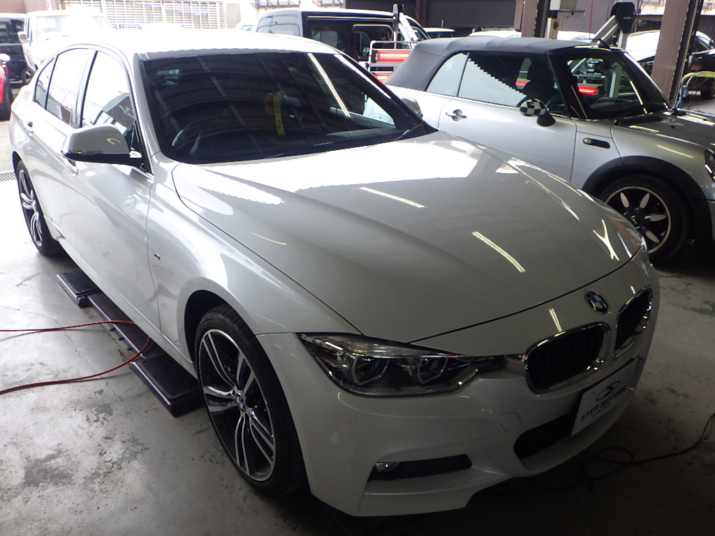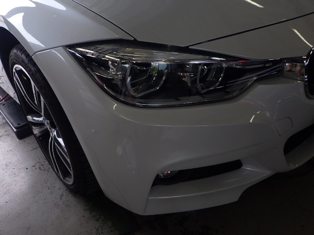 【鈑金塗装】【事故】兵庫県神戸市、T様、2018y、BMW、3シリーズ、F30、フロントバンパー損傷へこみ修理レポートです!ありがとうございました。