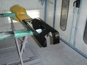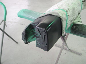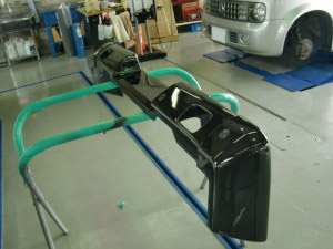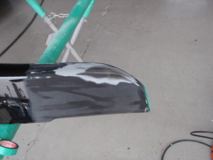 リアバンパサイドにプラスチックプライマーの塗布後、